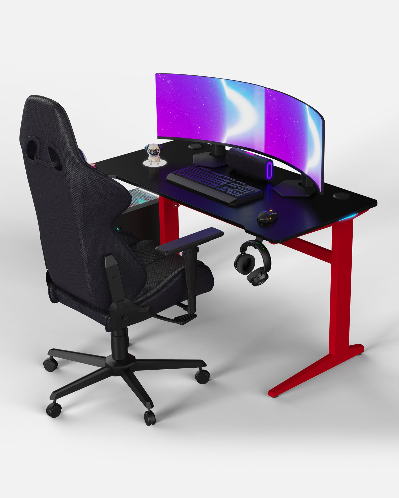 Core 120 Gaming Desk | LEDs, Headphone & Drink Mounts (Carbon Fibre Red, 120cm) Gaming Desk - Marcel Olsen