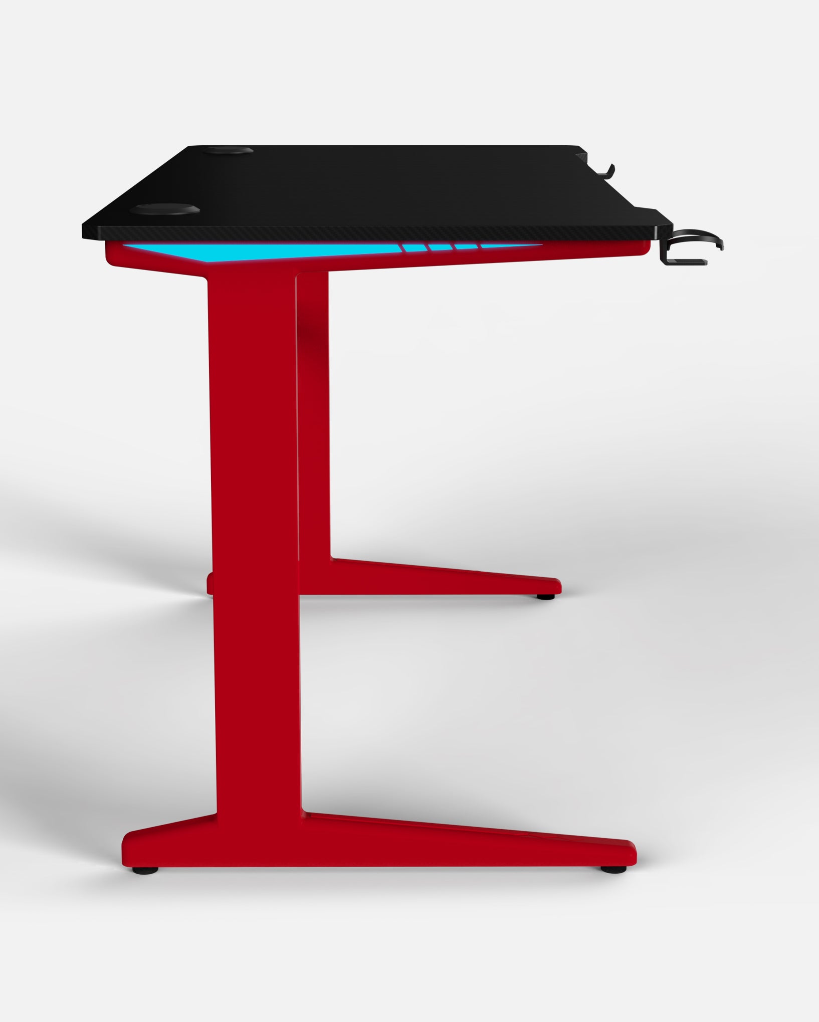 Core 140 Gaming Desk | LEDs, Headphone & Drink Mounts (Carbon Fibre Red, 140cm) Gaming Desk - Marcel Olsen