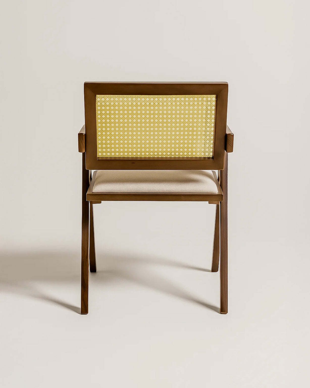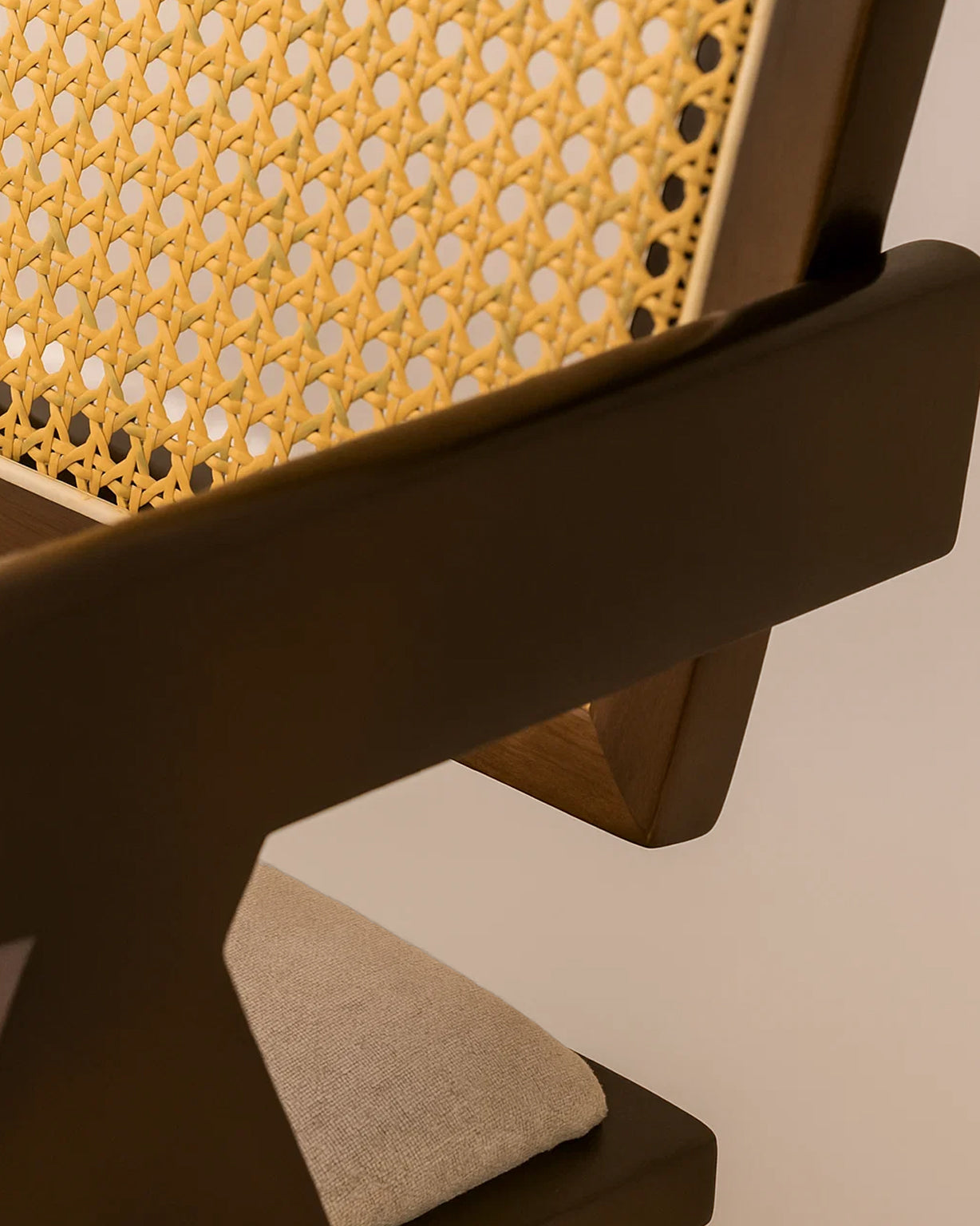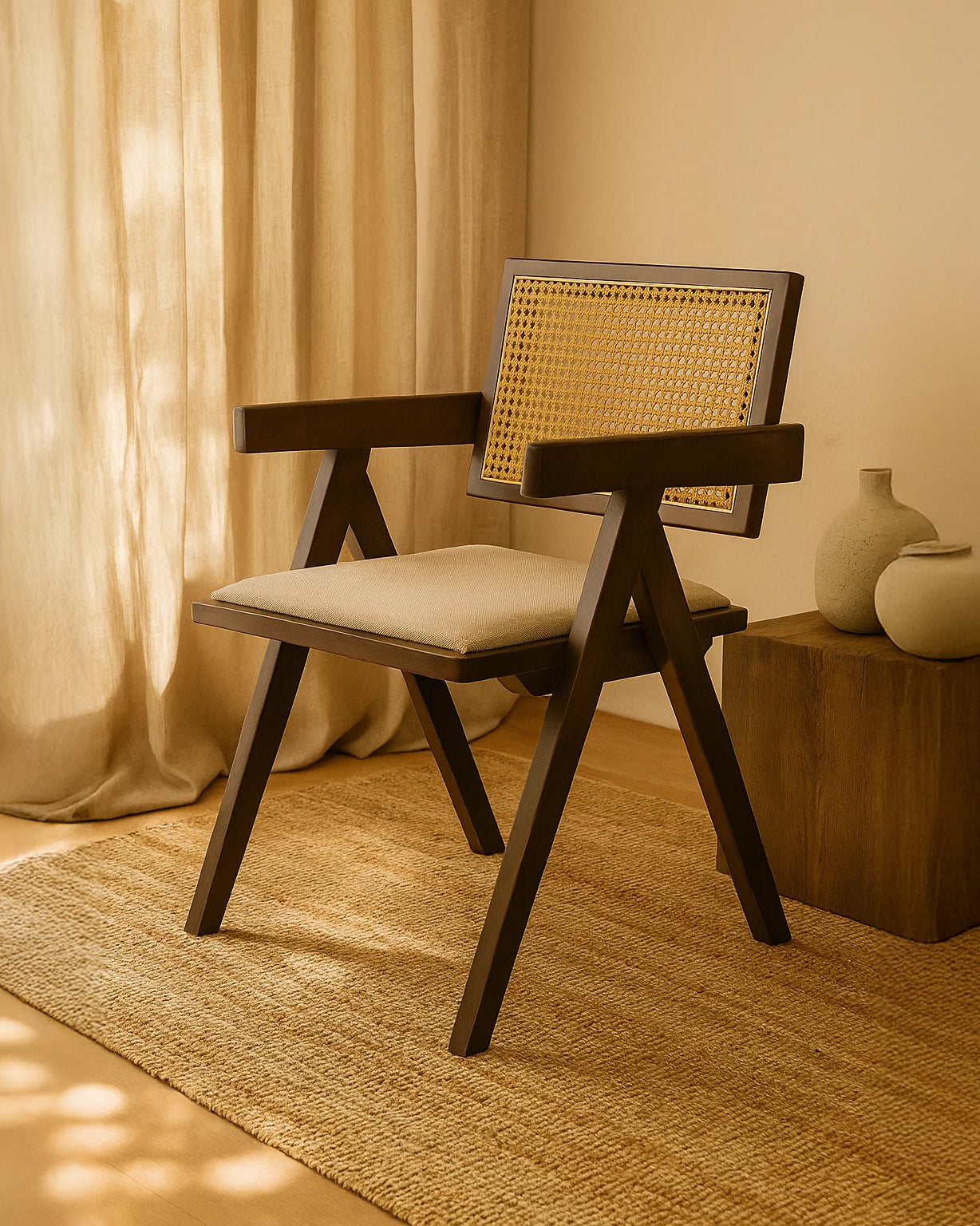 Caña tejida, madera maciza y mucho estilo. La Silla Chiva es una nueva interpretación del diseño clásico de mediados de siglo, combinando texturas naturales con un toque moderno y afilado. El marco de madera estructurado mantiene las cosas elegantes, mientras que el respaldo tejido añade un toque de encanto vintage. ¿Y el asiento de tela tapizada? Eso es comodidad garantizada.
