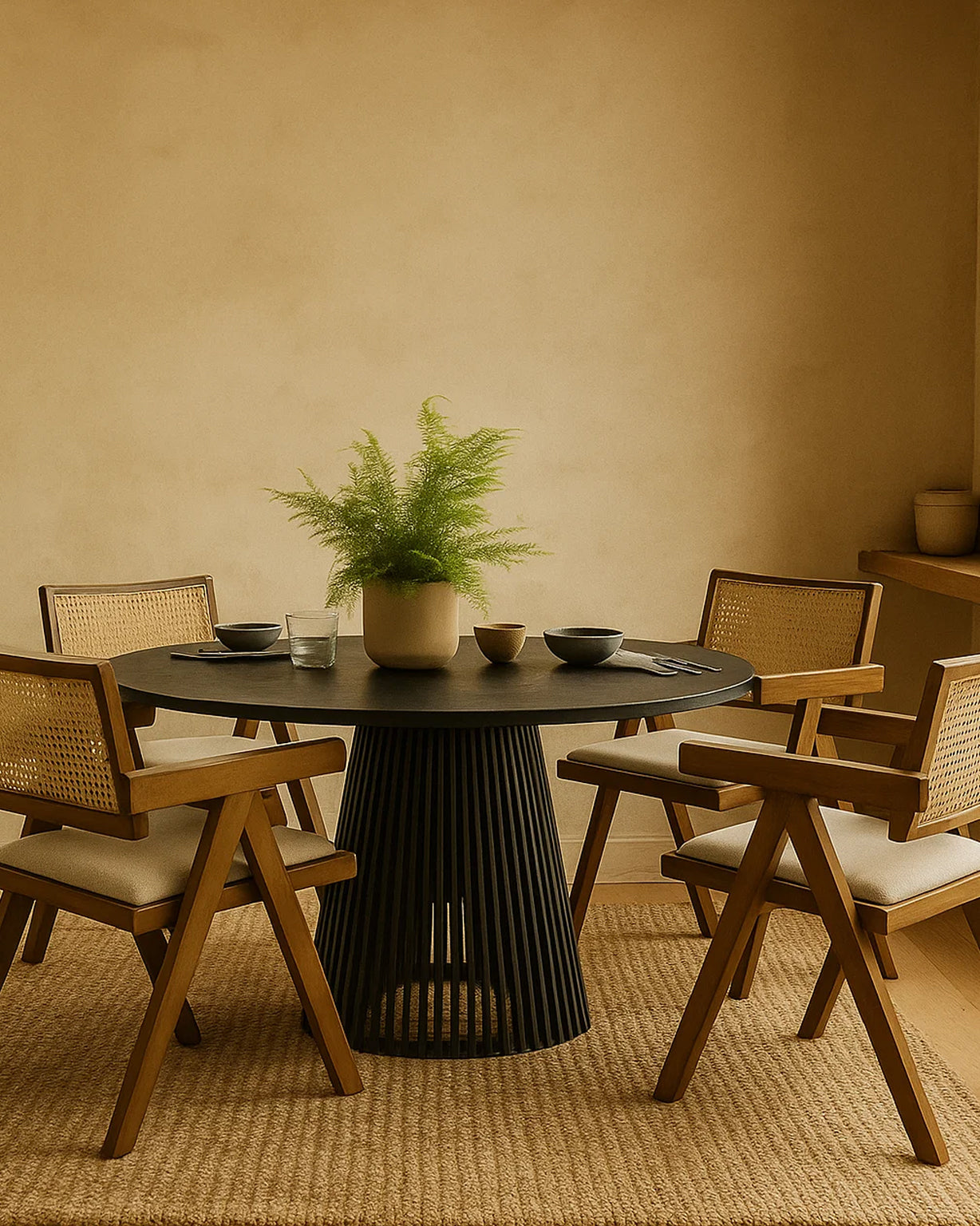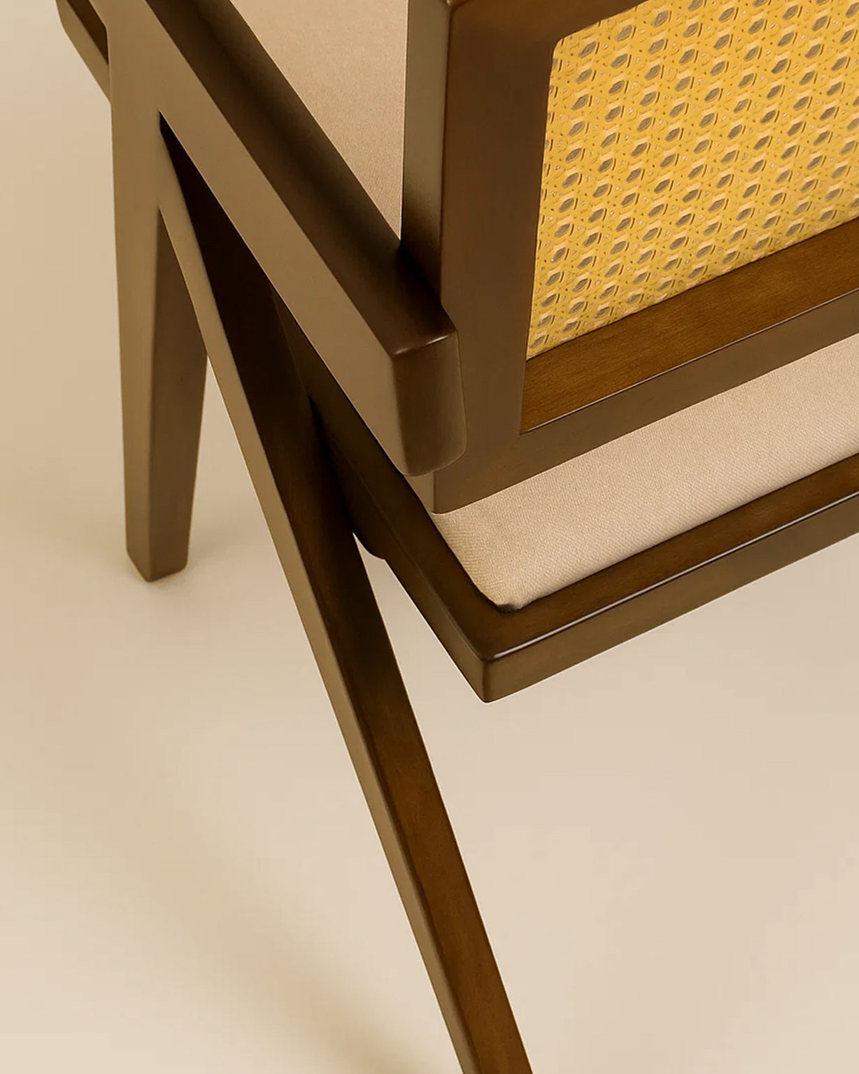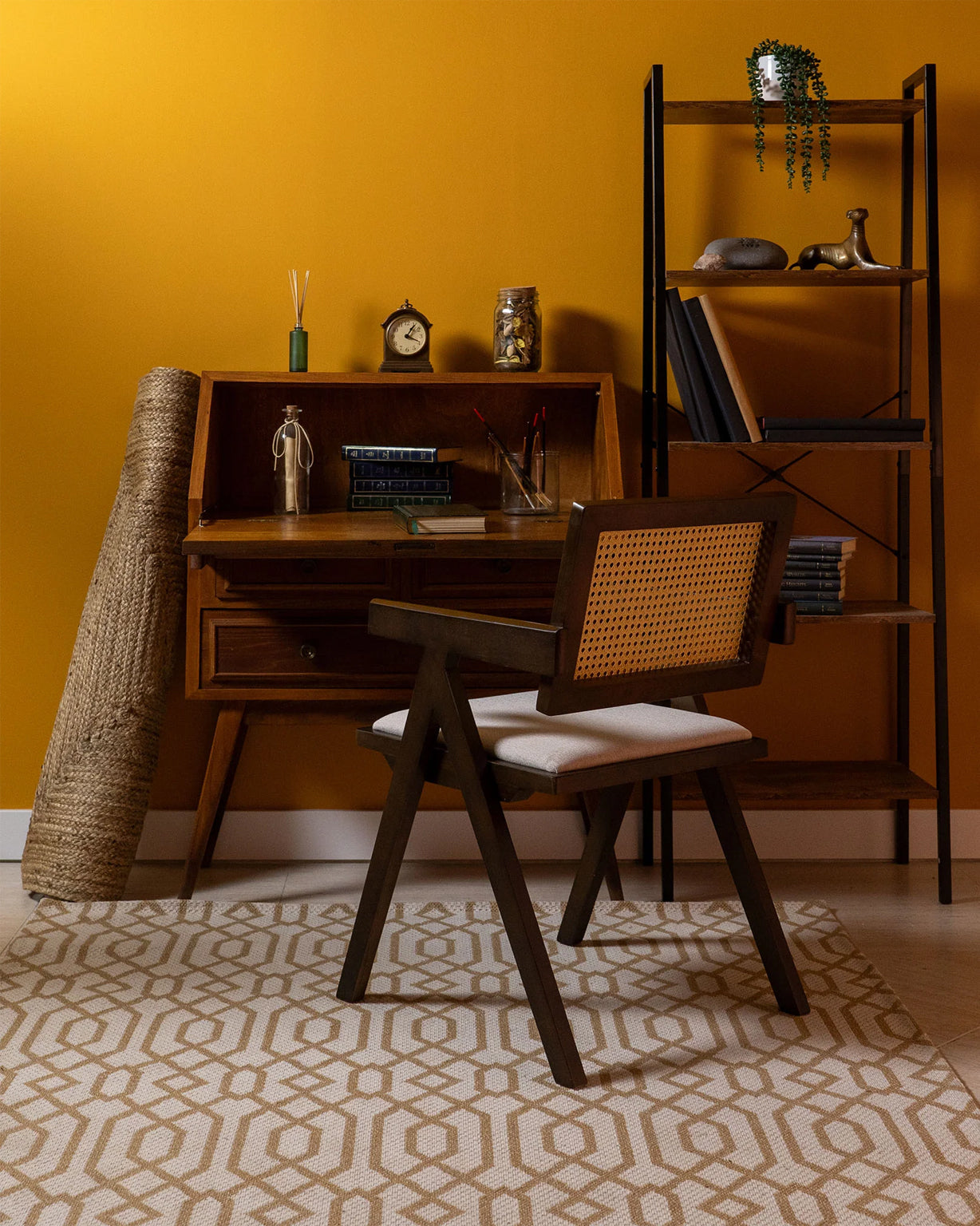 Caña tejida, madera maciza y mucho estilo. La Silla Chiva es una nueva interpretación del diseño clásico de mediados de siglo, combinando texturas naturales con un toque moderno y afilado. El marco de madera estructurado mantiene las cosas elegantes, mientras que el respaldo tejido añade un toque de encanto vintage. ¿Y el asiento de tela tapizada? Eso es comodidad garantizada.