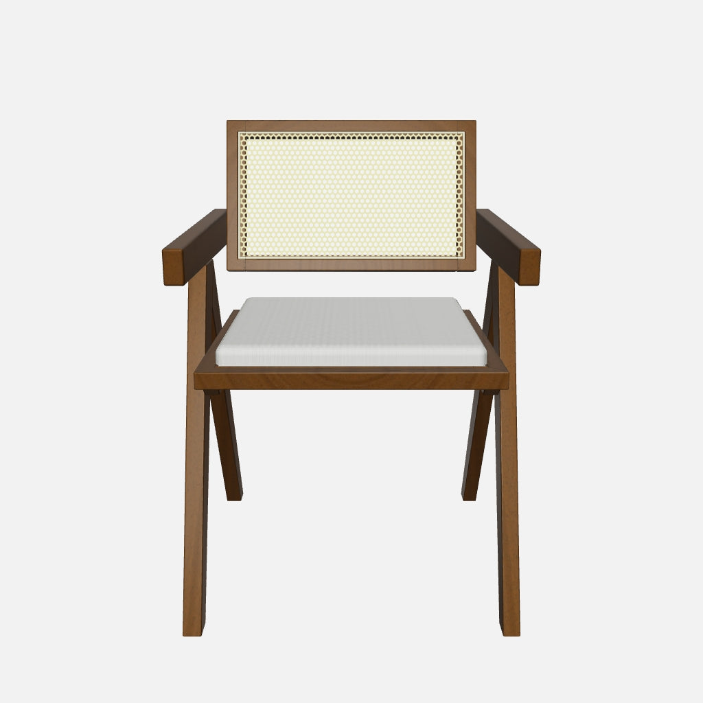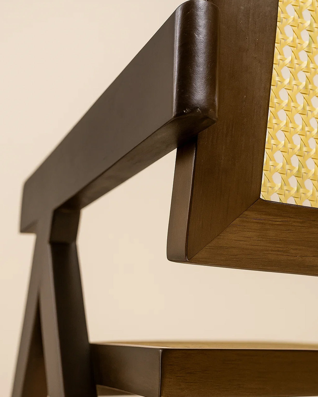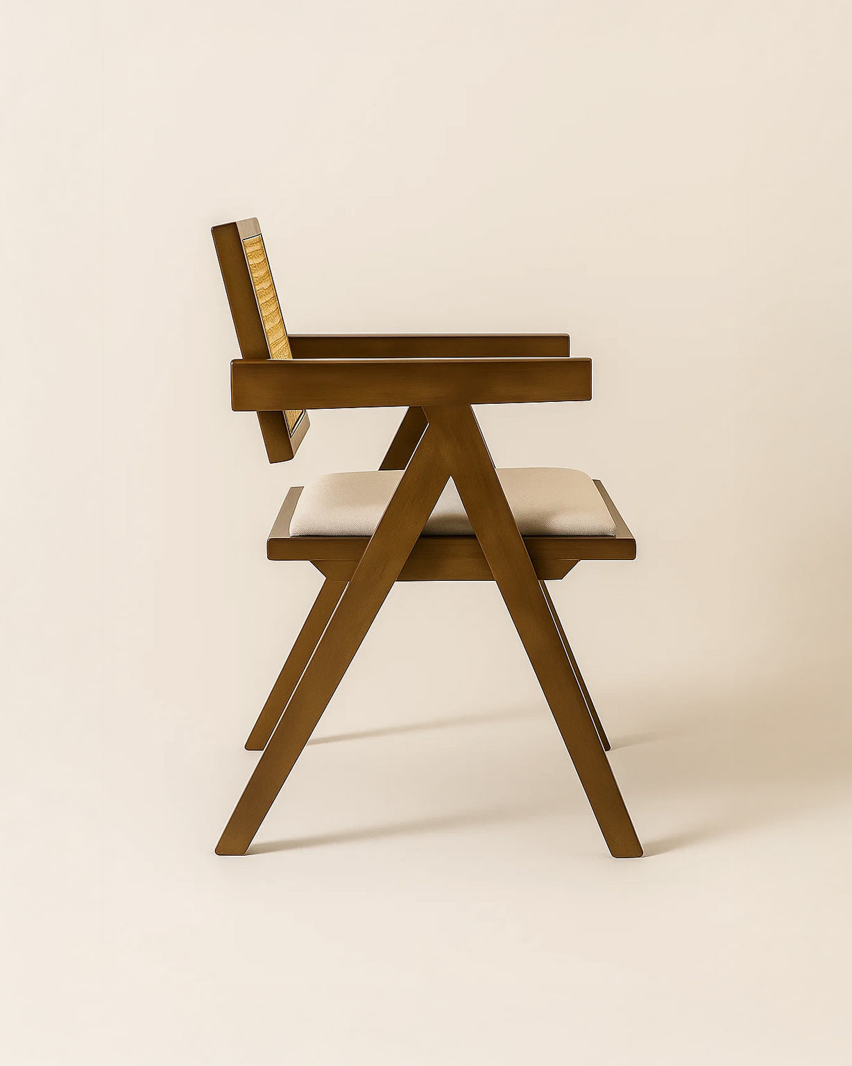 Chiva Rattan & Wood Dining Chair (Chestnut) – Rustic Boho Upholstered Chair with Armrests - Marcel Olsen