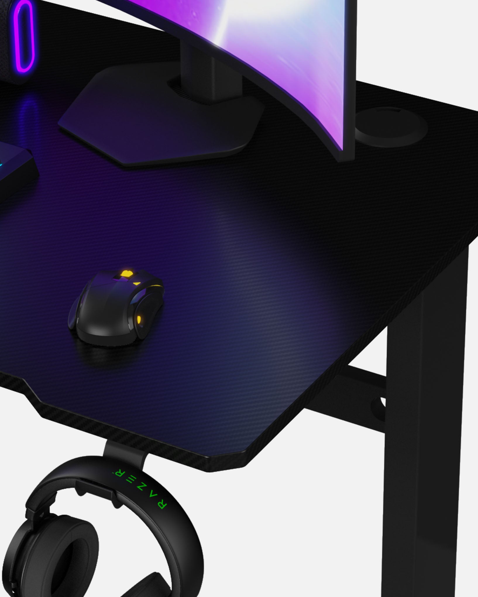Core 120 Gaming Desk | LEDs, Headphone & Drink Mounts (Carbon Fibre Black, 120cm) Gaming Desk - Marcel Olsen