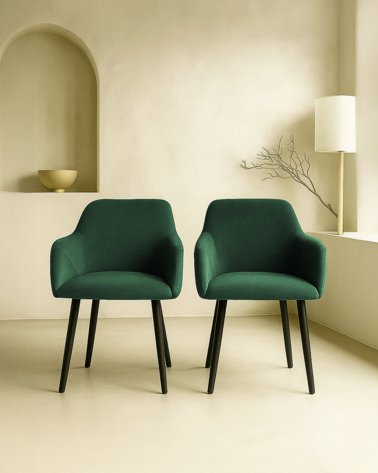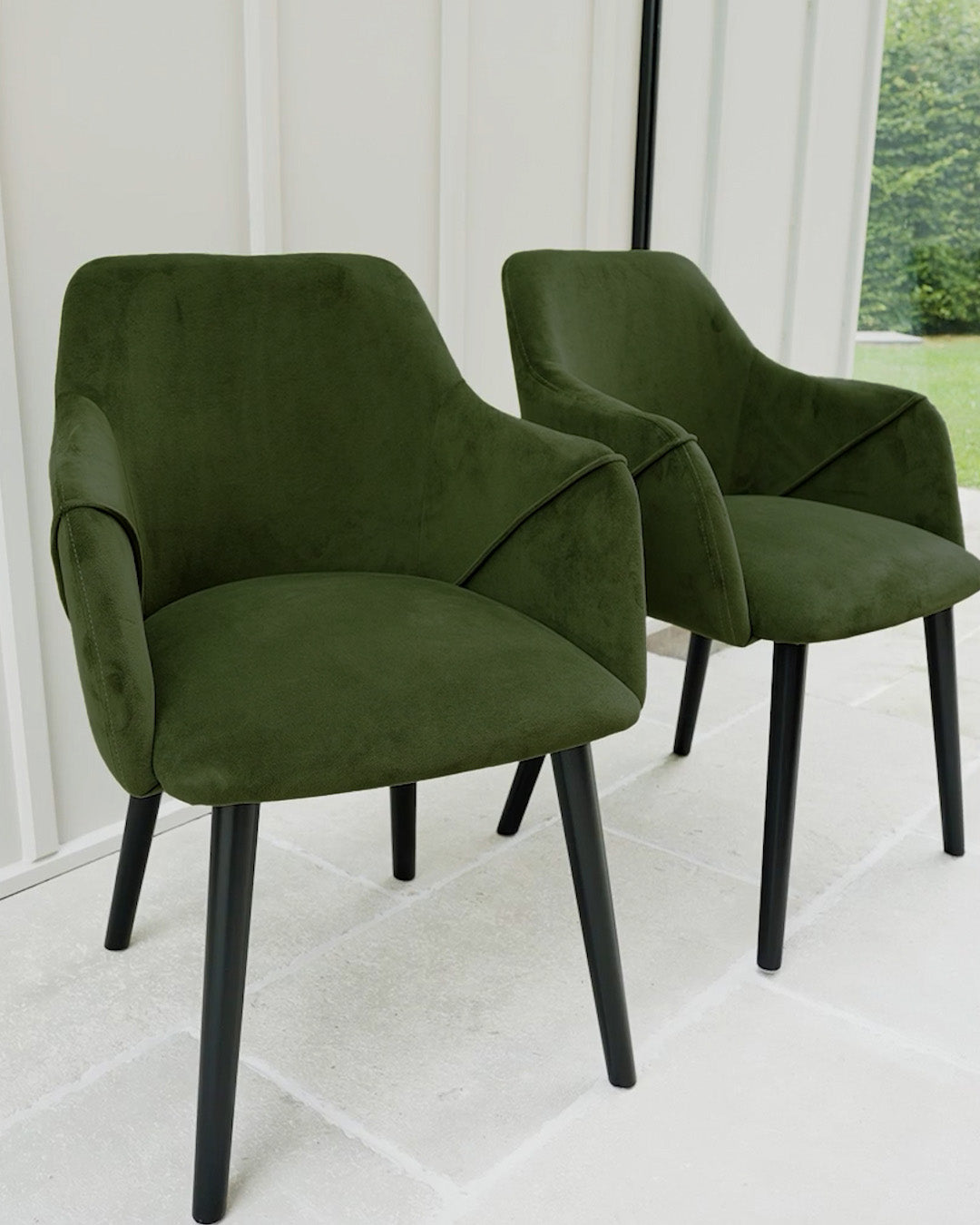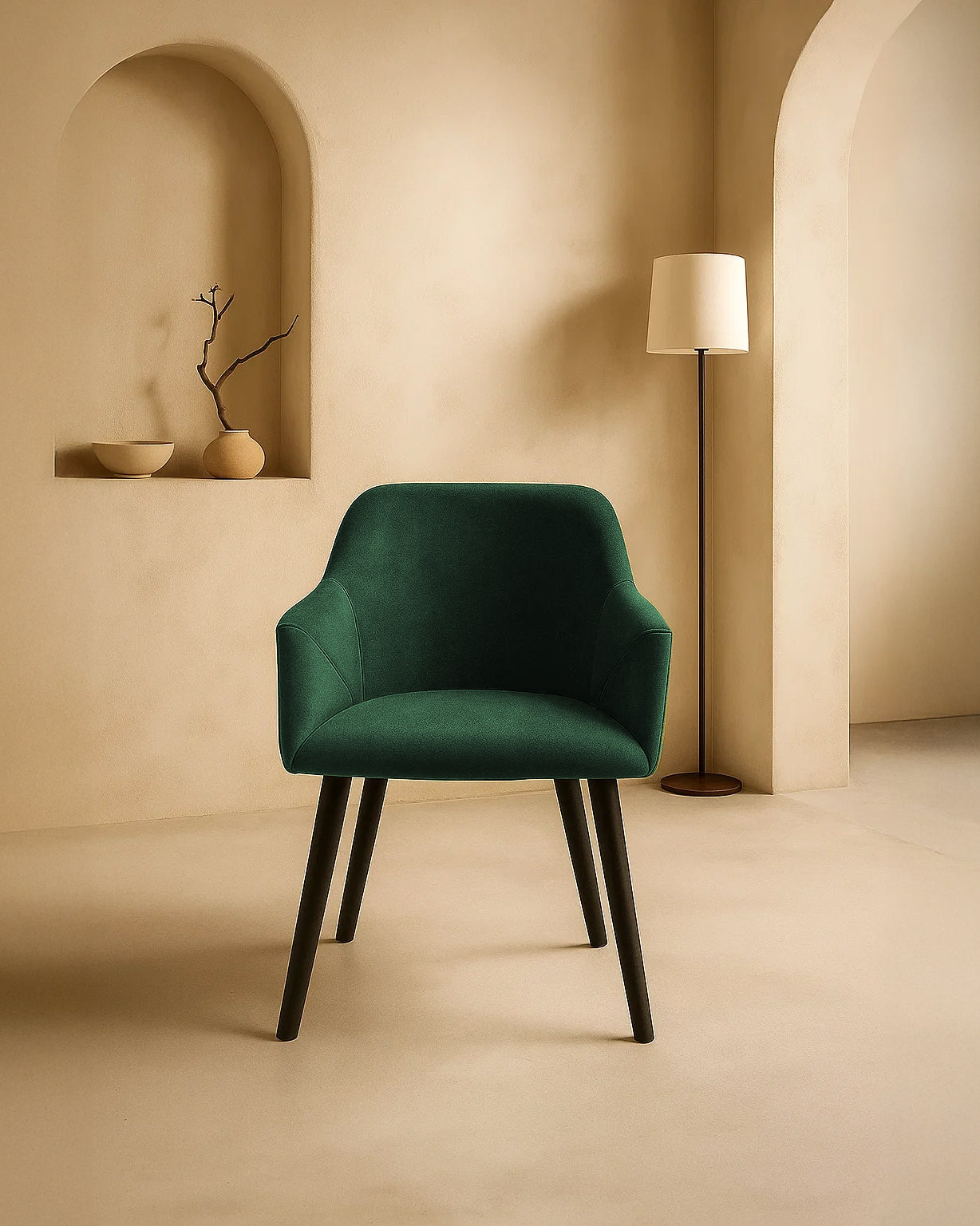 Dites bonjour à Bonanova — notre chaise de salle à manger en velours qui est aussi agréable à utiliser qu'à regarder. Conçue avec des accoudoirs doucement incurvés, un siège confortablement rembourré et des pieds noirs élégants, c'est le genre de chaise qui améliore chaque moment à table, des plats à emporter en semaine aux dîners arrosés de vin.