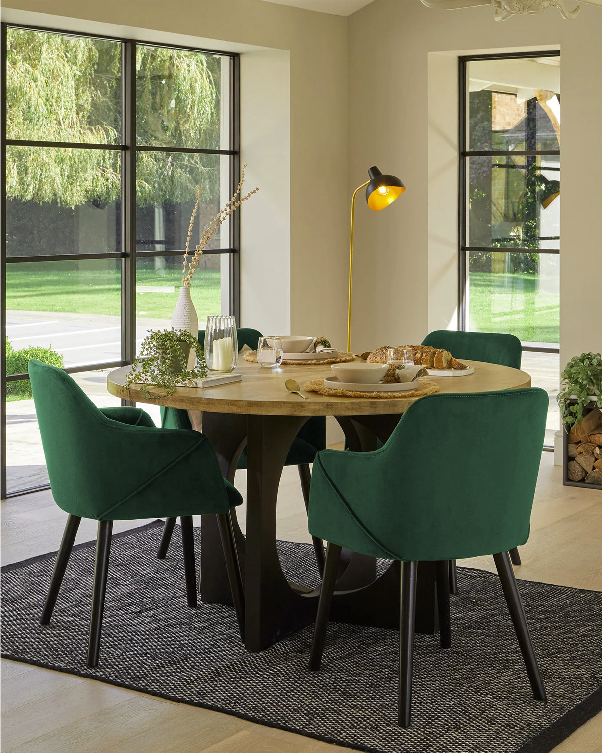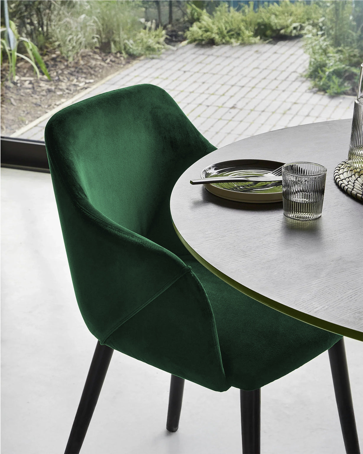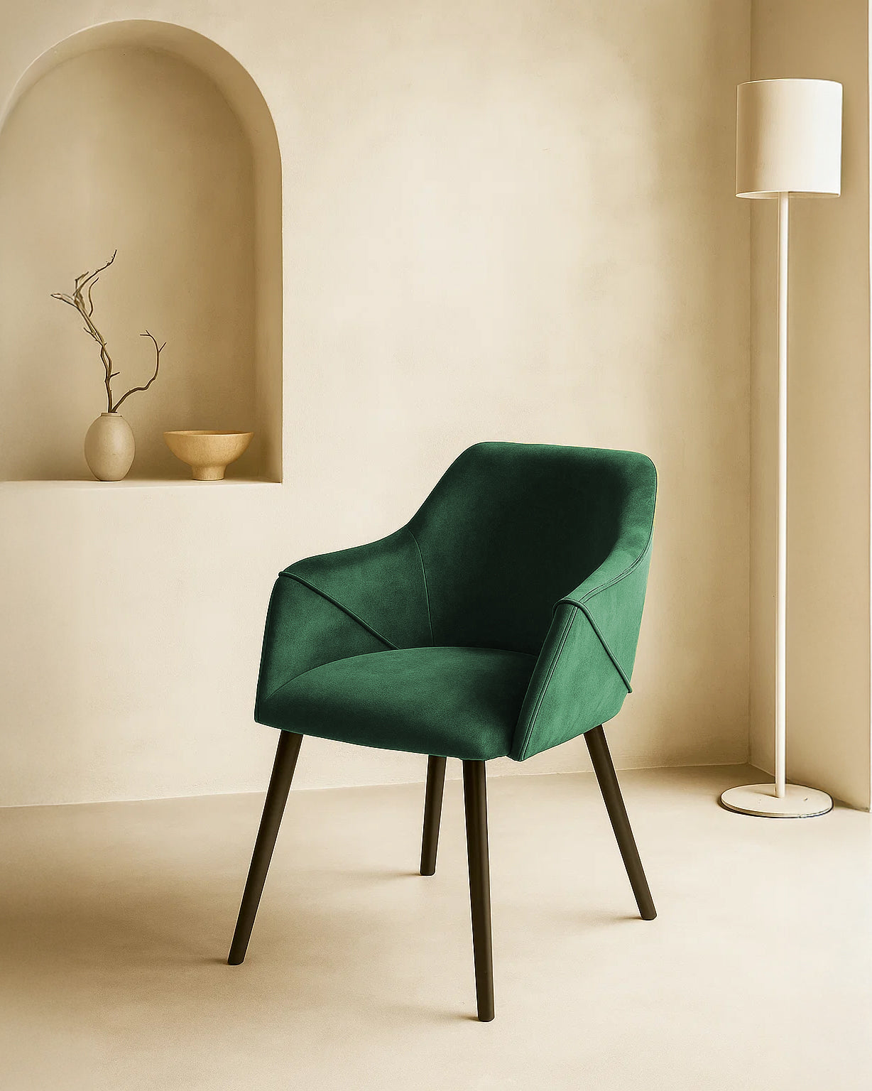 Dites bonjour à Bonanova — notre chaise de salle à manger en velours qui est aussi agréable à utiliser qu'à regarder. Conçue avec des accoudoirs doucement incurvés, un siège confortablement rembourré et des pieds noirs élégants, c'est le genre de chaise qui améliore chaque moment à table, des plats à emporter en semaine aux dîners arrosés de vin.