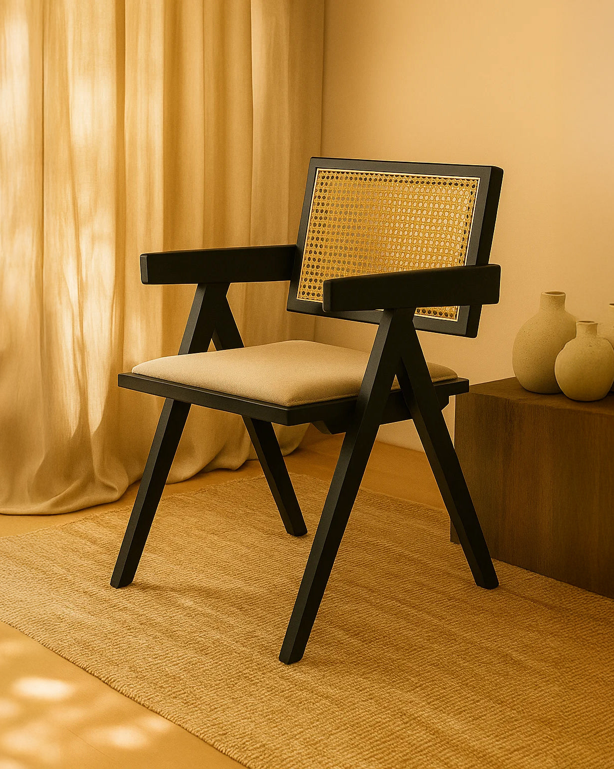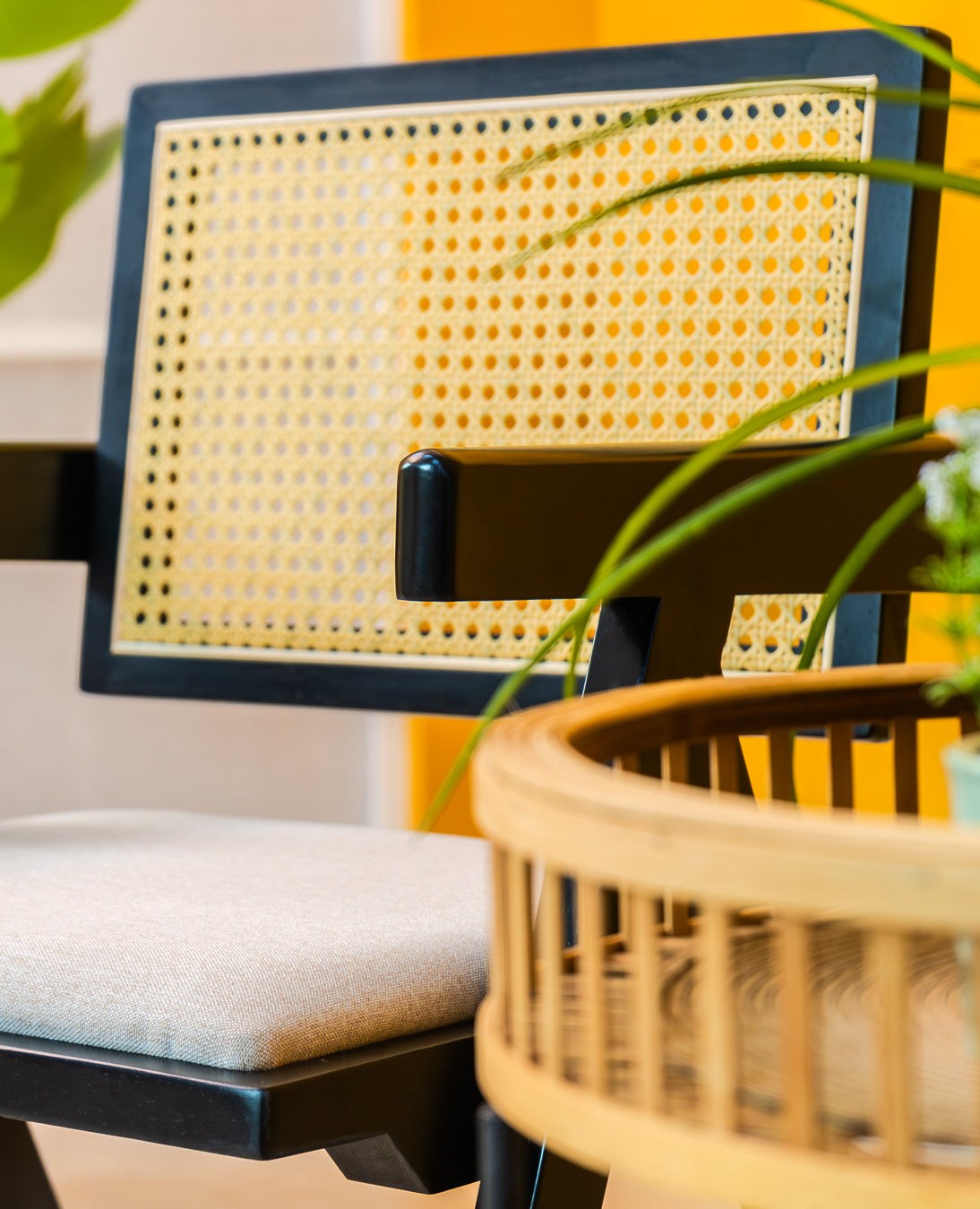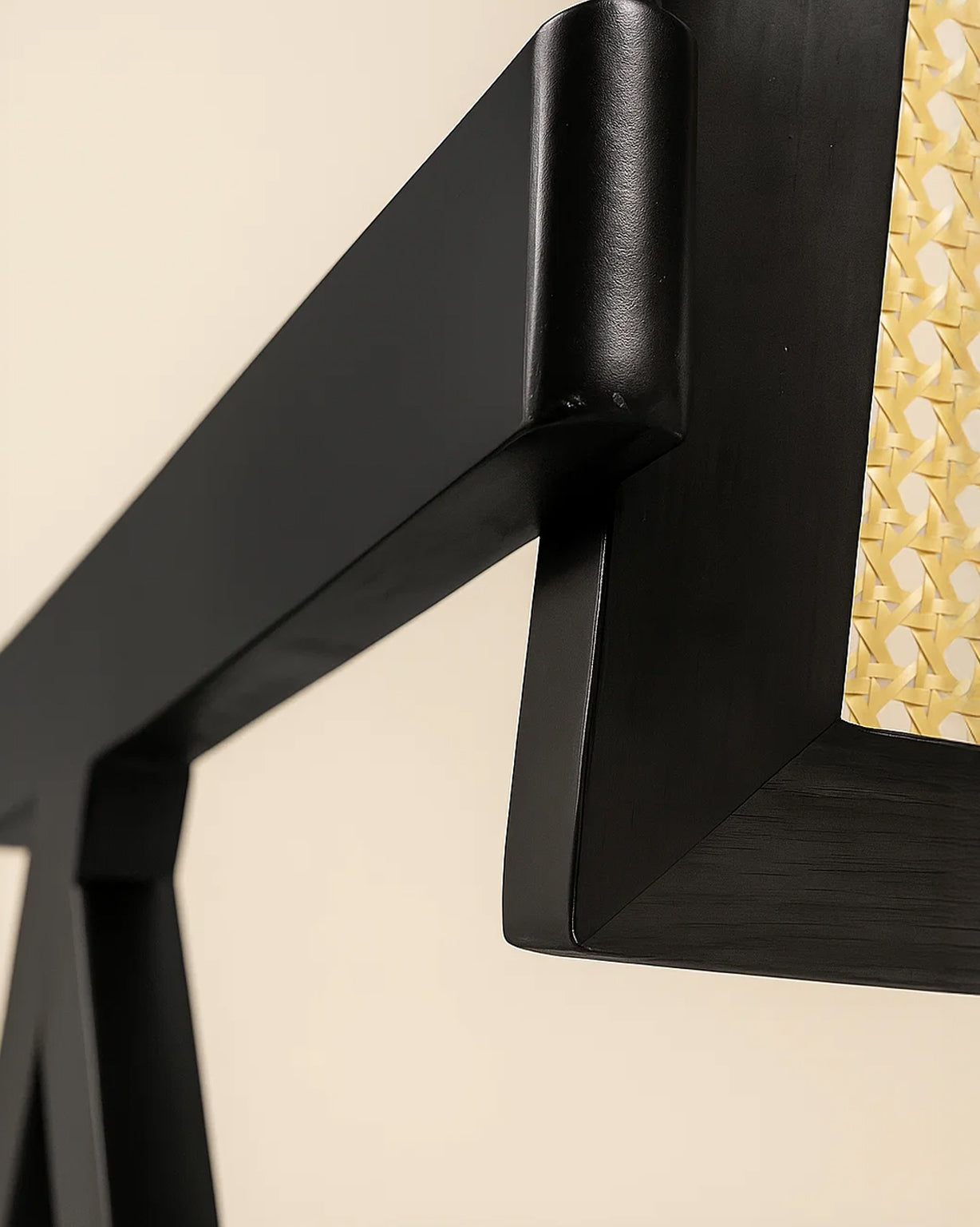 Canne tissée, bois massif, et beaucoup de style. La Chaise Chiva est une interprétation moderne du design classique du Milieu du Siècle, mêlant textures naturelles et une touche moderne acérée. Le cadre en bois structuré garde un aspect épuré, tandis que le dossier tissé ajoute une touche de charme vintage. Et le siège en tissu rembourré ? C'est le confort assuré.