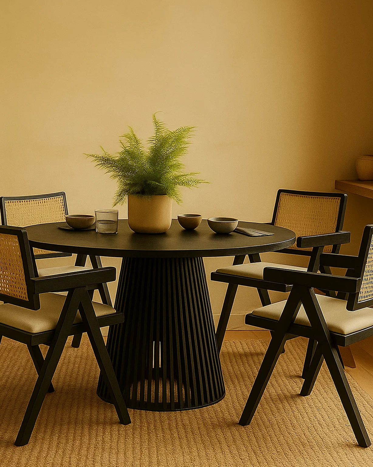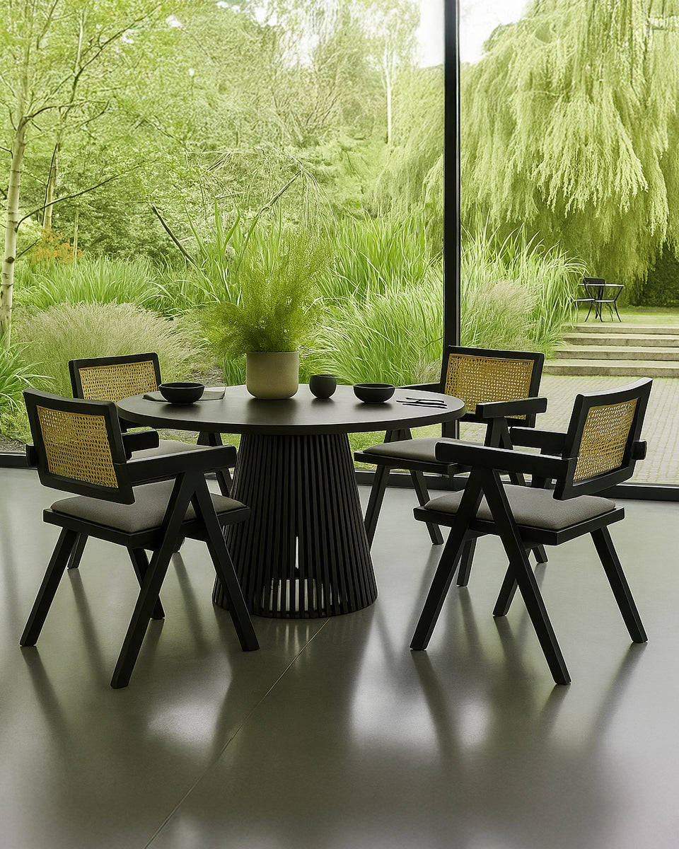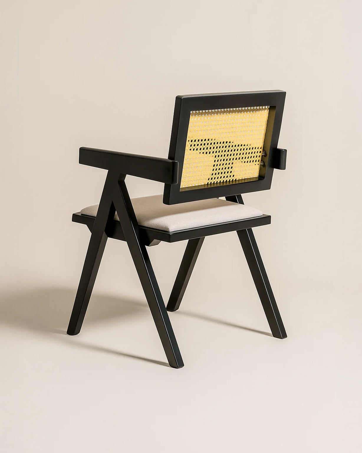 Canne tissée, bois massif, et beaucoup de style. La Chaise Chiva est une interprétation moderne du design classique du Milieu du Siècle, mêlant textures naturelles et une touche moderne acérée. Le cadre en bois structuré garde un aspect épuré, tandis que le dossier tissé ajoute une touche de charme vintage. Et le siège en tissu rembourré ? C'est le confort assuré.