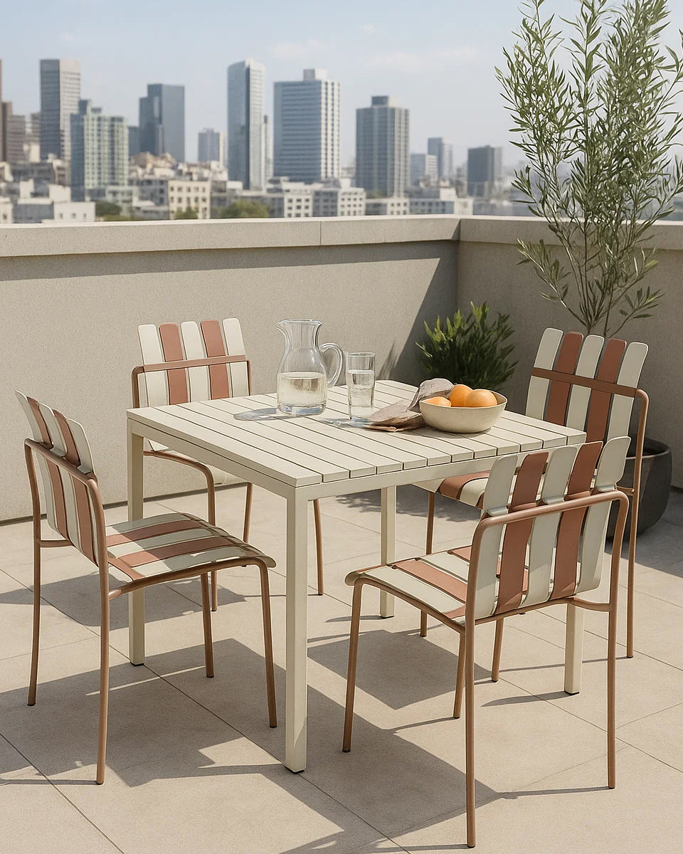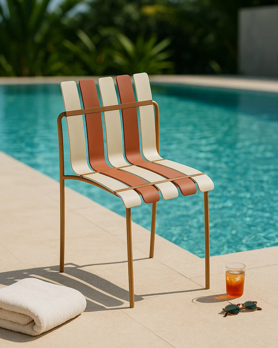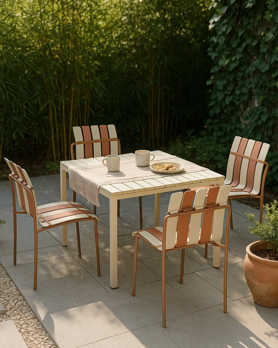 Chaise D'Extérieur Ondara (Beige Nude & Blanc) – Chaise De Patio Bohème Moderne