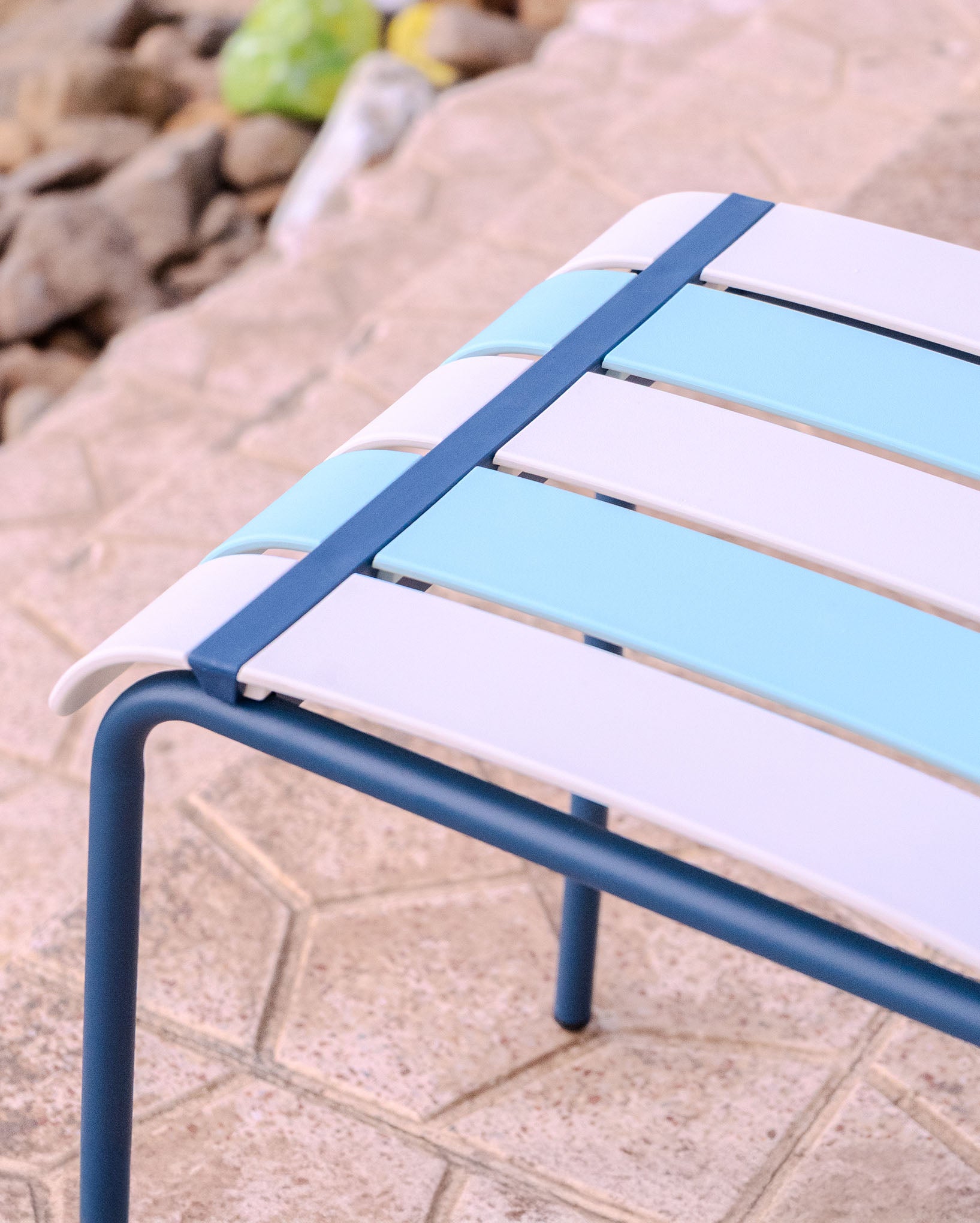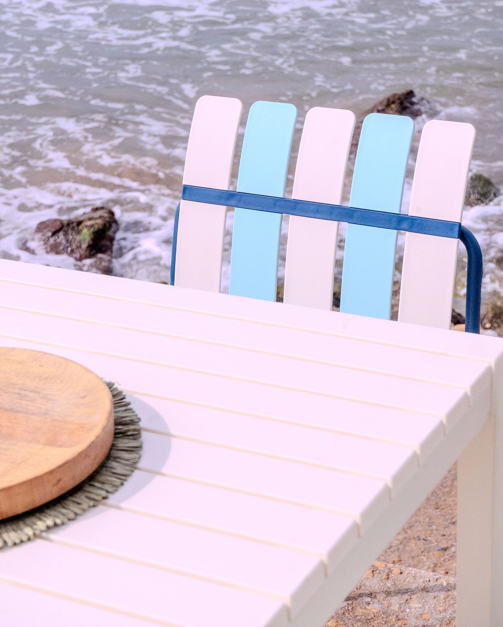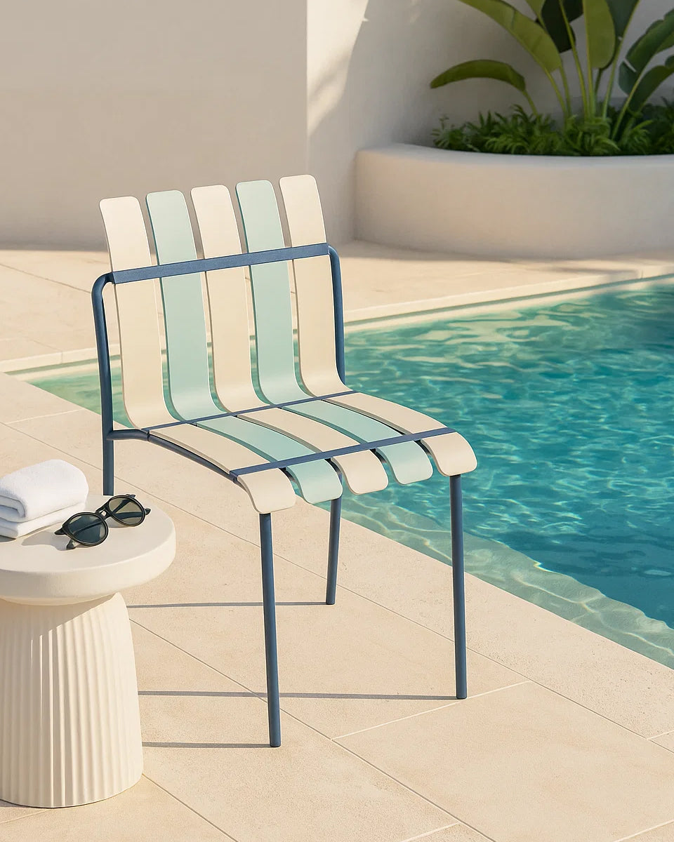 Chaise D'Extérieur Ondara (Bleu Mer & Blanc) – Chaise De Patio Bohème Moderne
