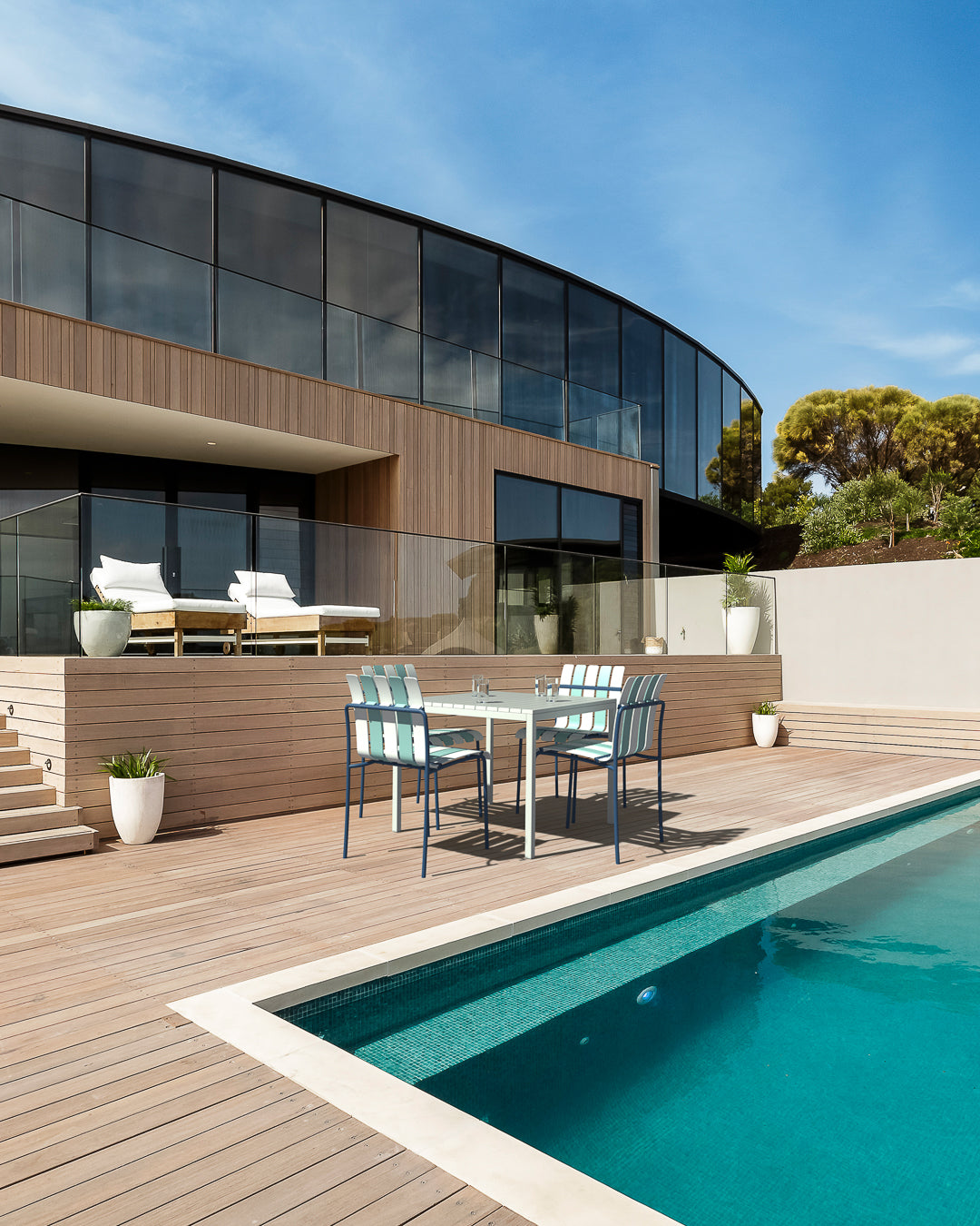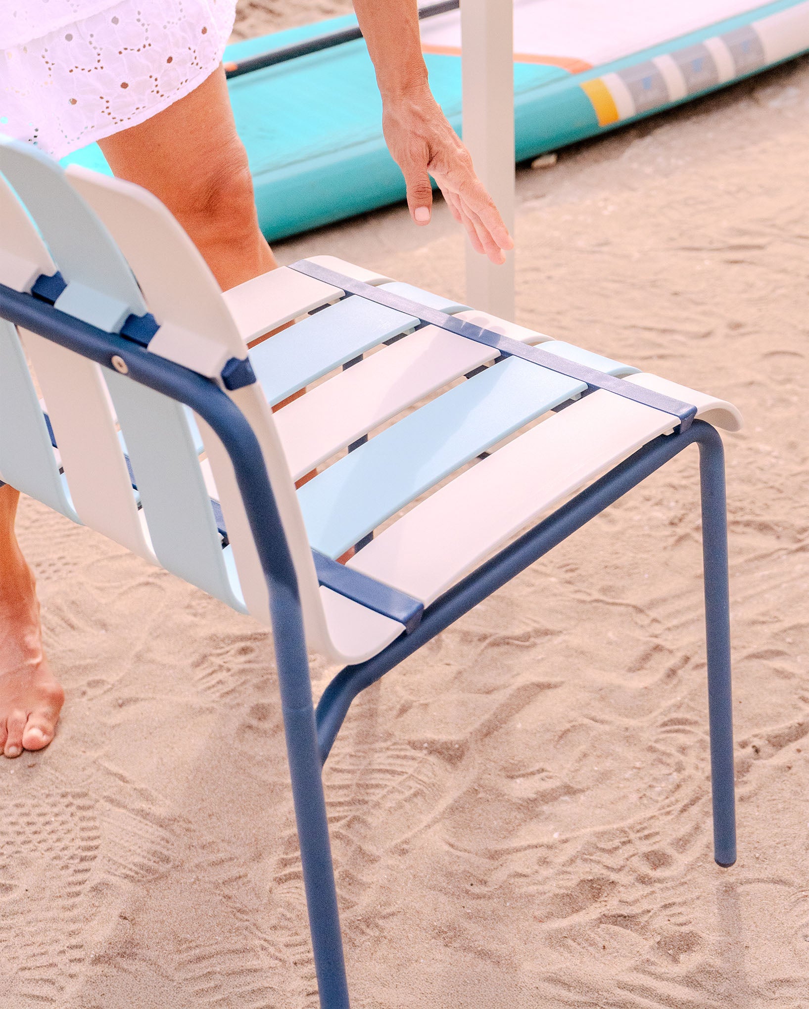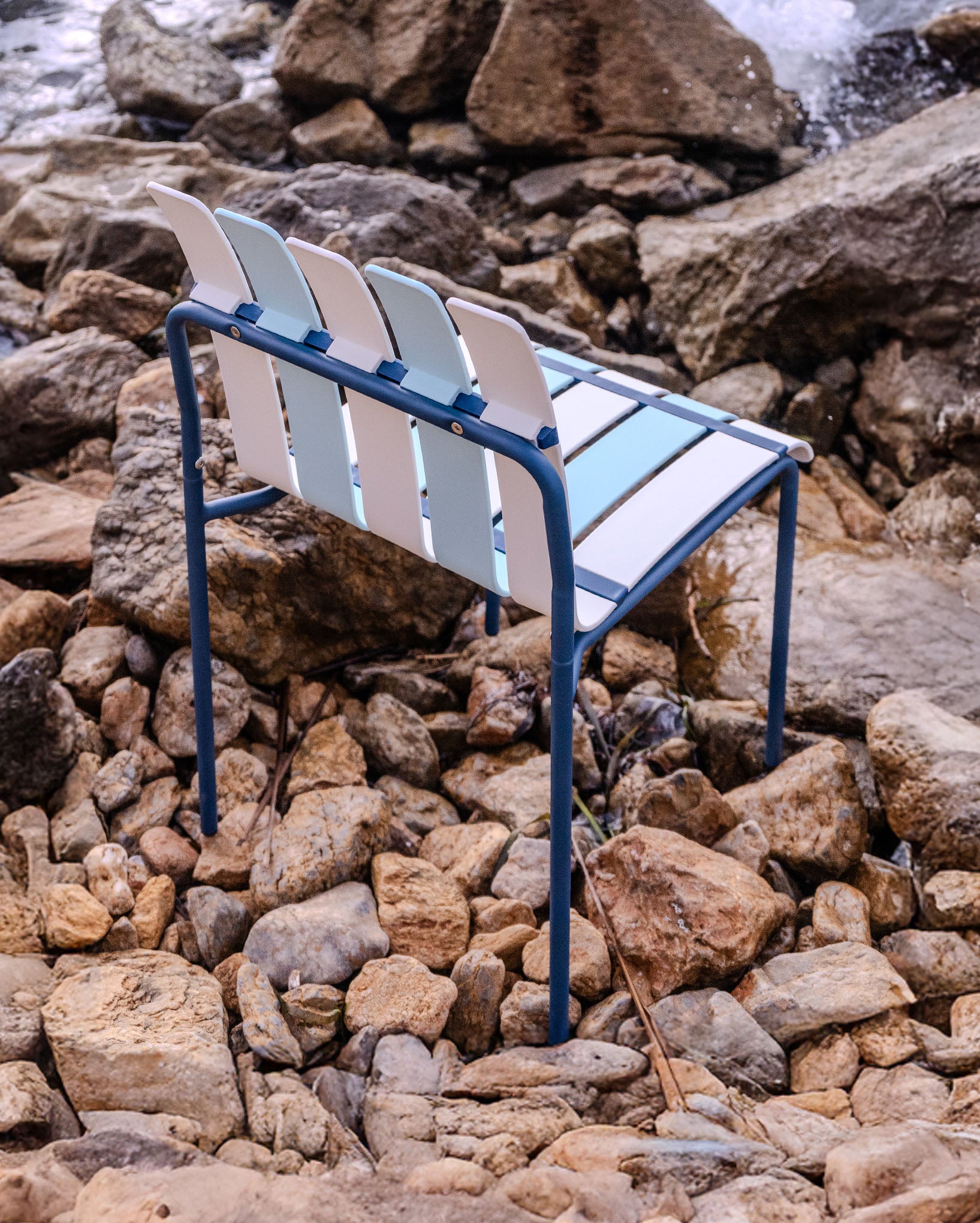 Chaise D'Extérieur Ondara (Bleu Mer & Blanc) – Chaise De Patio Bohème Moderne
