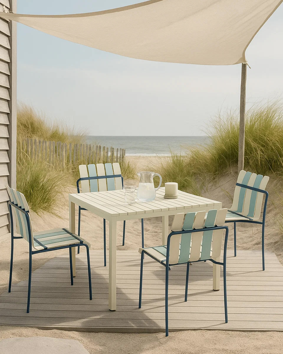 Ondara Outdoor 4 Chair & Dining Table (Sea Blue & White) – Modern Boho Patio Pack - Marcel Olsen