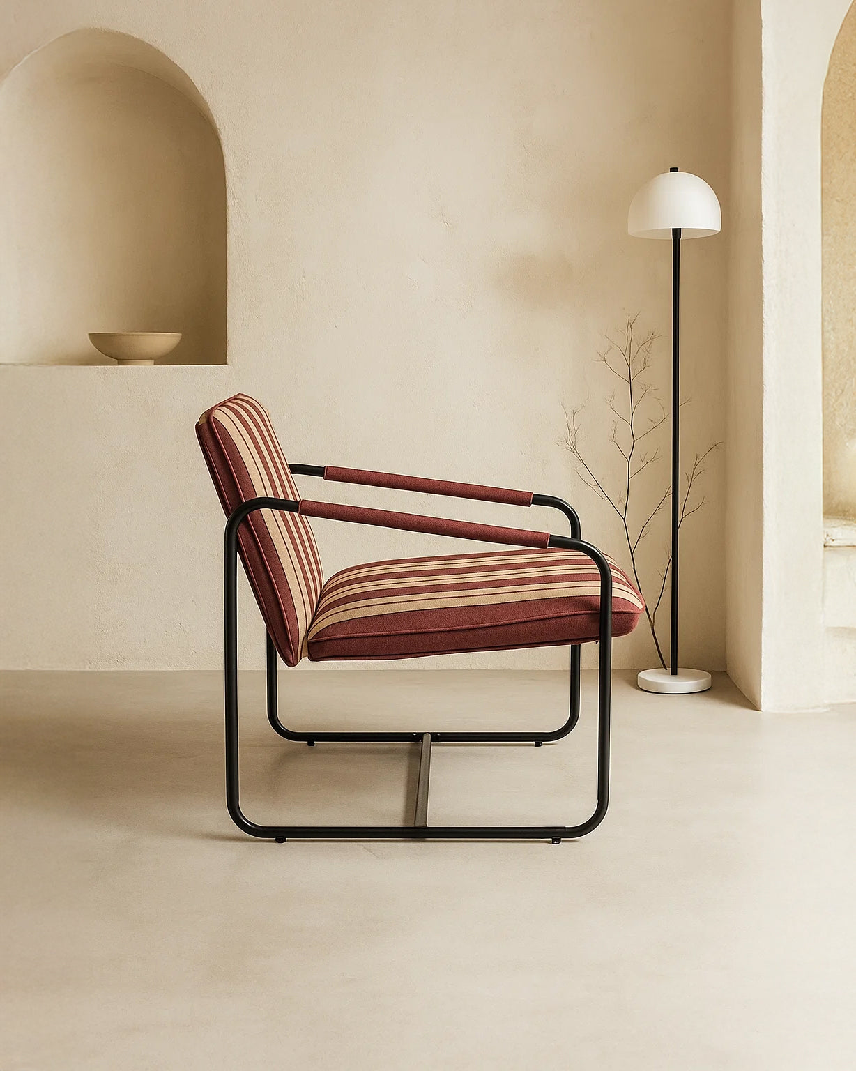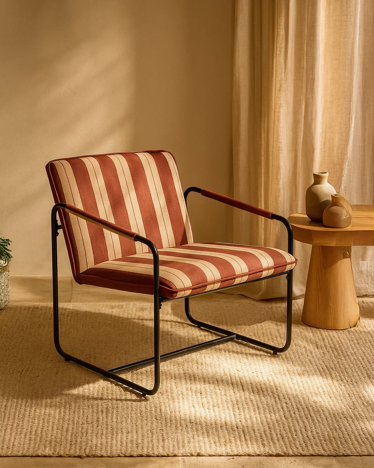 Avec un siège bas et structuré et un dossier légèrement incliné, Berria est conçu pour se détendre facilement—que vous soyez en train de vous blottir avec un livre, de recevoir des amis ou simplement de profiter d'une matinée tranquille. Disponible en Dune Sand (Gris & Beige) pour une ambiance naturelle et discrète ou Crimson Sand (Rouge Foncé & Beige) pour quelque chose avec un peu plus de profondeur.