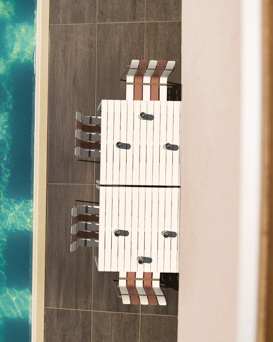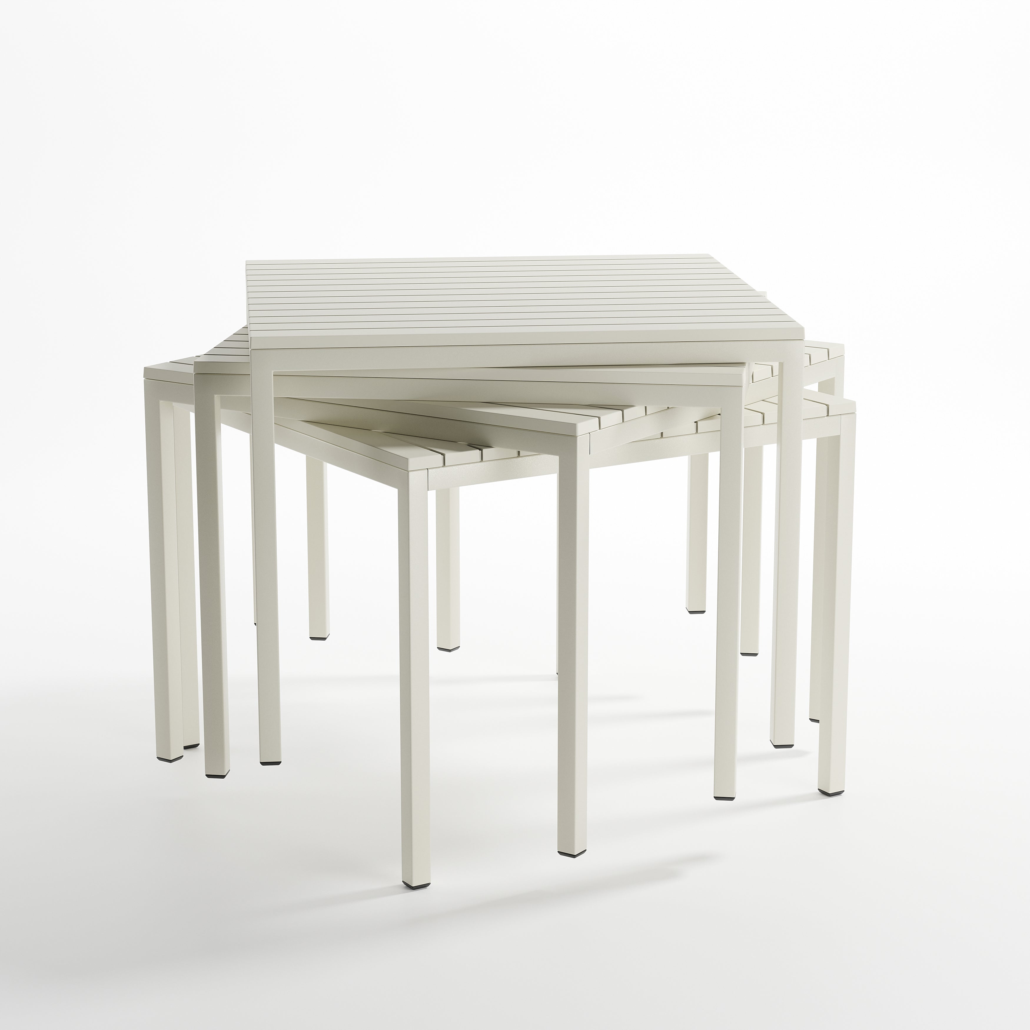 Avec sa finition blanche épurée et son design à lattes, la table à manger Ondara – Alba est une bouffée d'air frais. Elle est conçue pour les brunchs dans le jardin, le rosé sur le toit, ou simplement pour apporter cette sensation d'extérieur à l'intérieur. Et avec un cadre résistant aux UV et revêtu de poudre, elle est suffisamment robuste pour affronter toutes les intempéries.