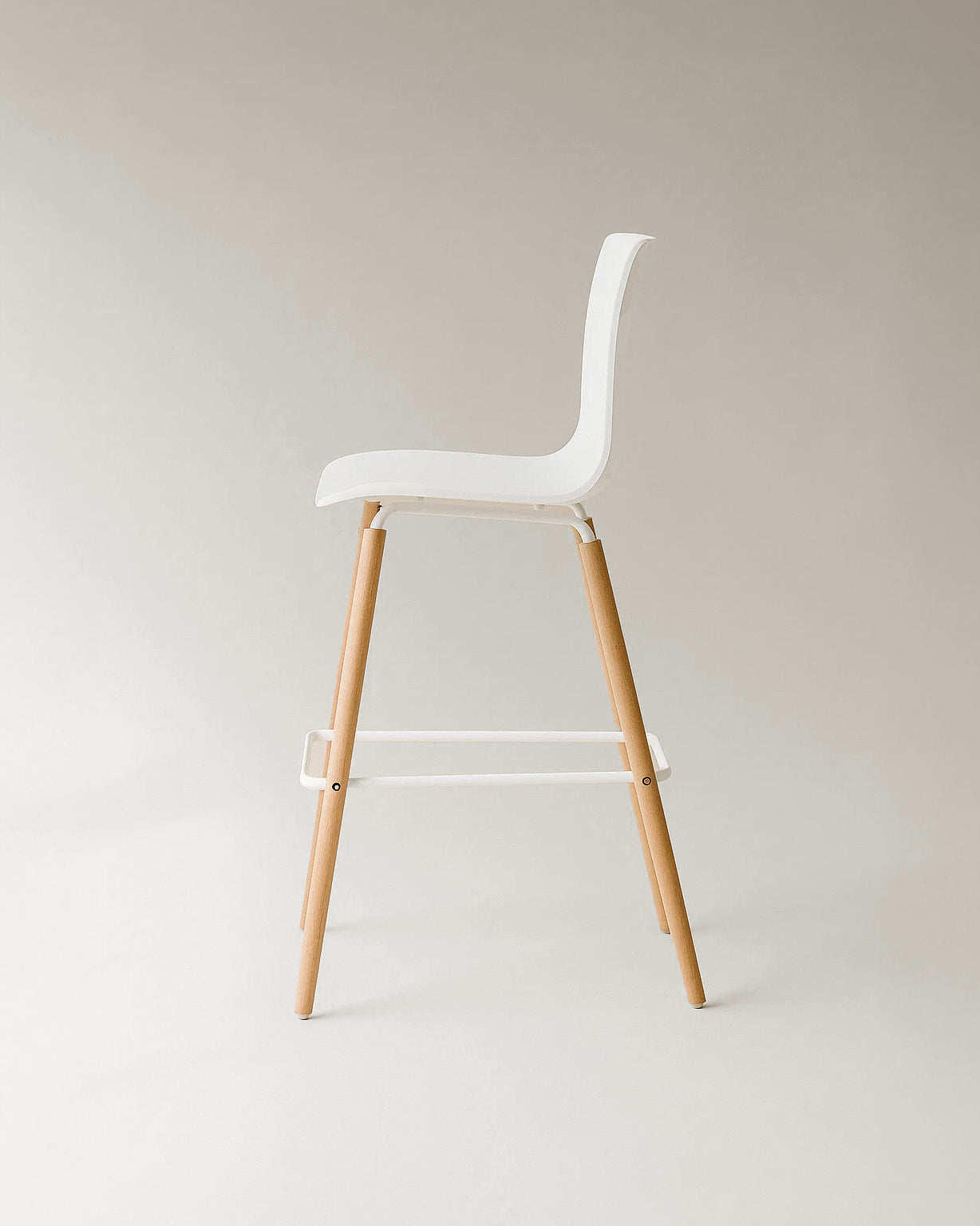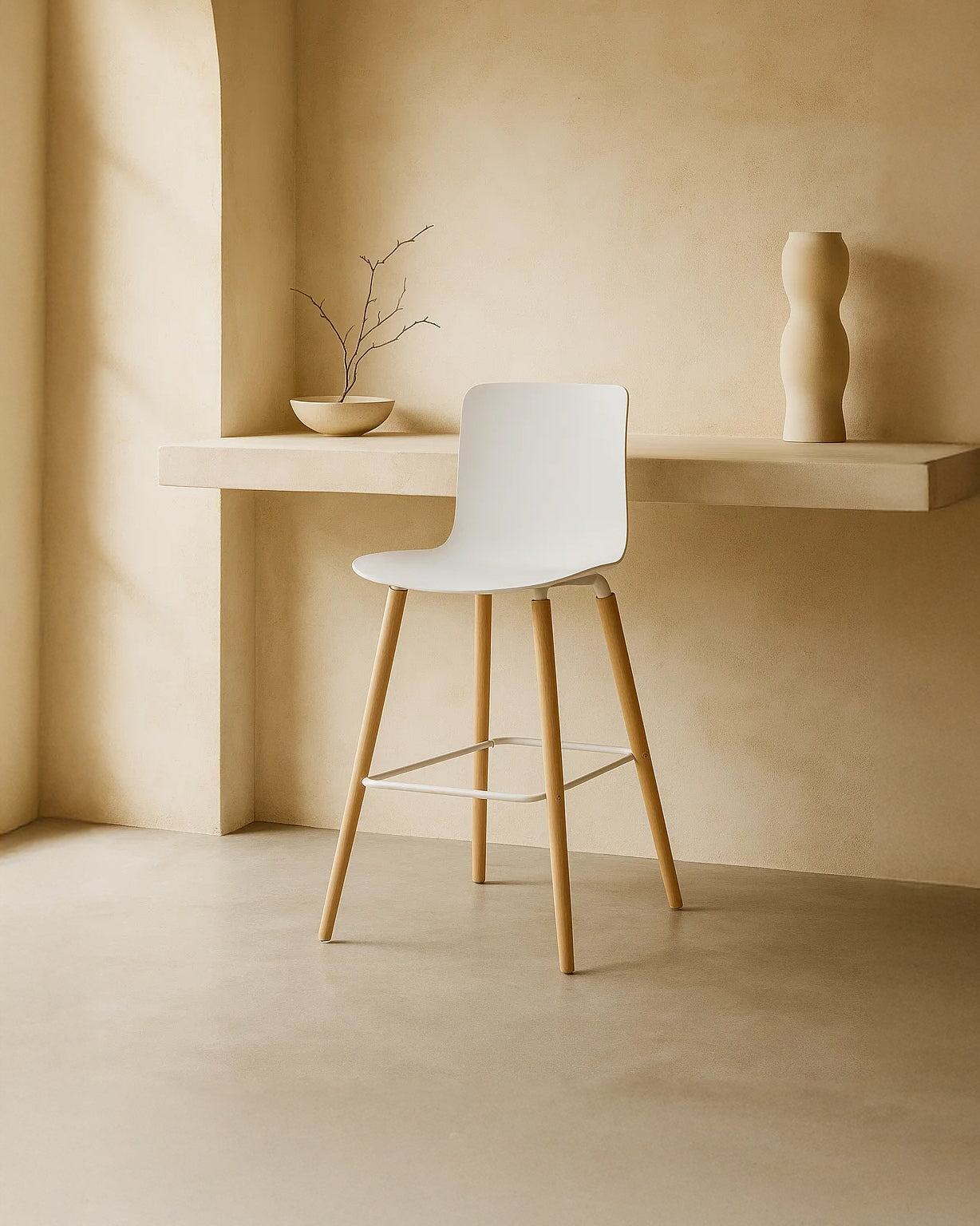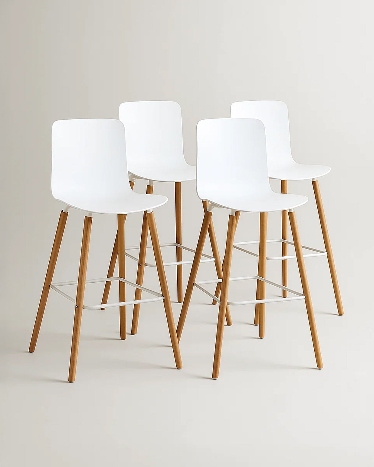 Tabouret De Bar Moderne Casco (Blanc Arctique) – Tabouret Coque Style Scandinave Avec Pieds En Bois (66 Cm) (4 Unités)