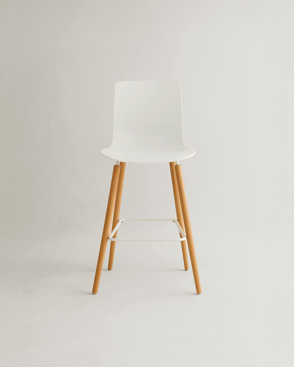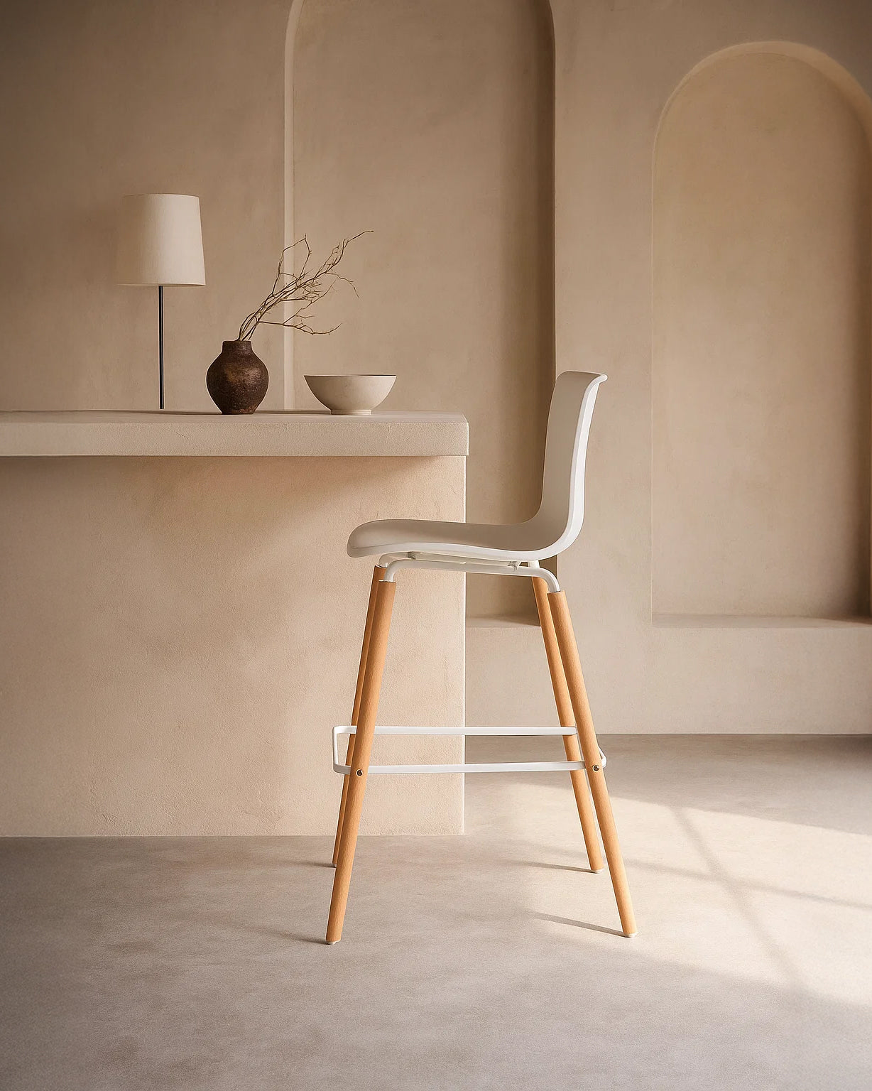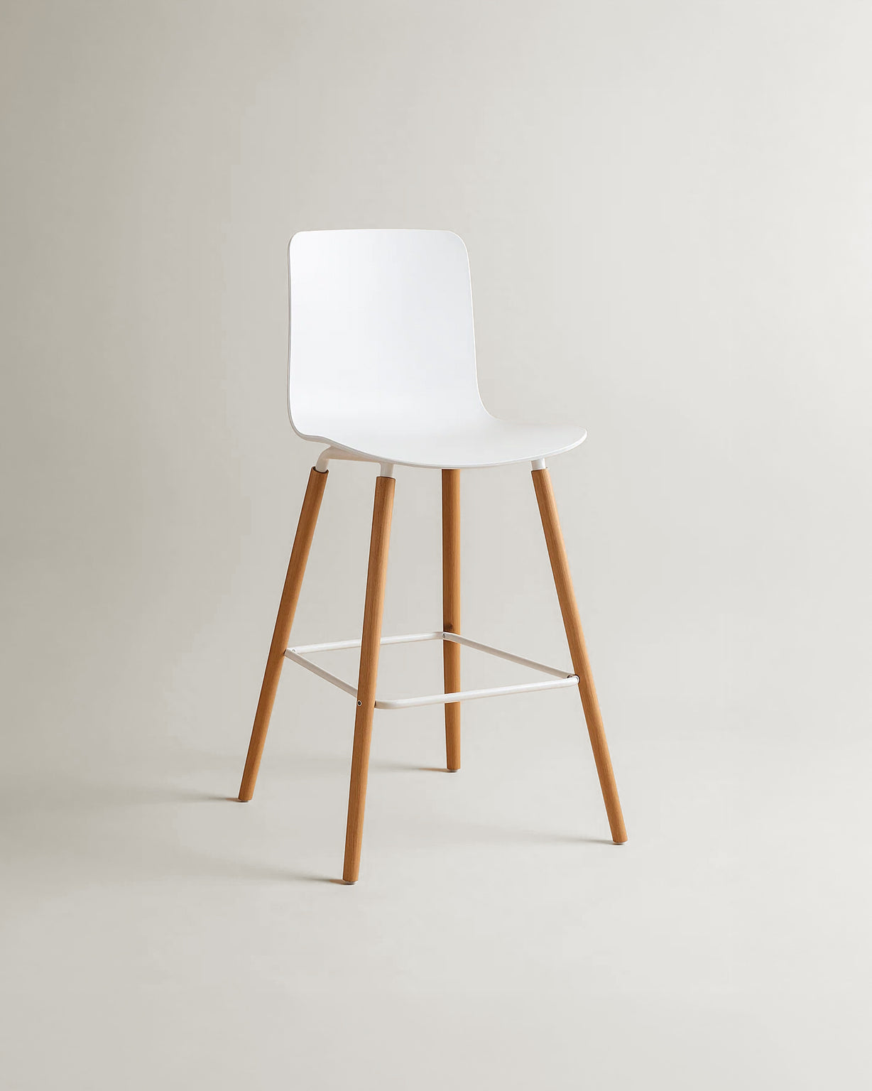 Tabouret De Bar Moderne Casco (Blanc Arctique) – Tabouret Coque Style Scandinave Avec Pieds En Bois (66 Cm) (4 Unités)