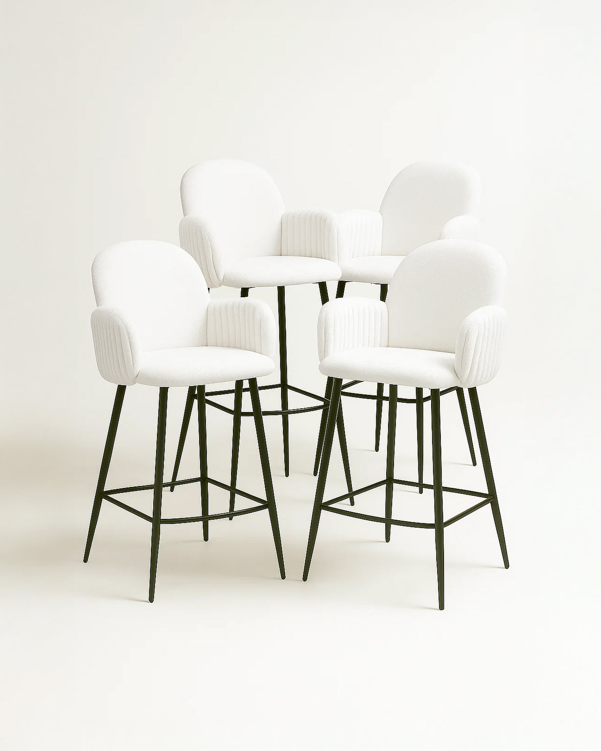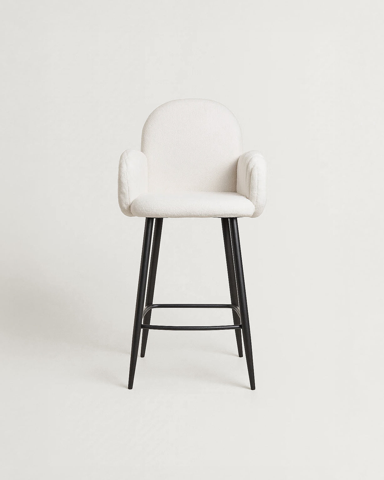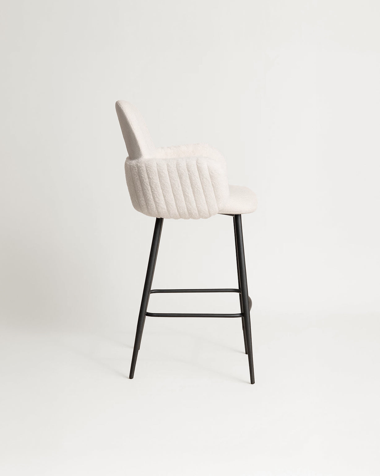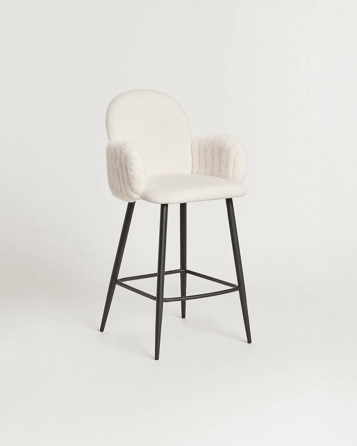 Votre îlot de cuisine vient de gagner en style. Le tabouret de bar Nubbi reprend tout ce que nous aimons dans la chaise de salle à manger — des accoudoirs roulés sculpturaux, une texture cosy, une forme audacieuse — et le soulève, littéralement.