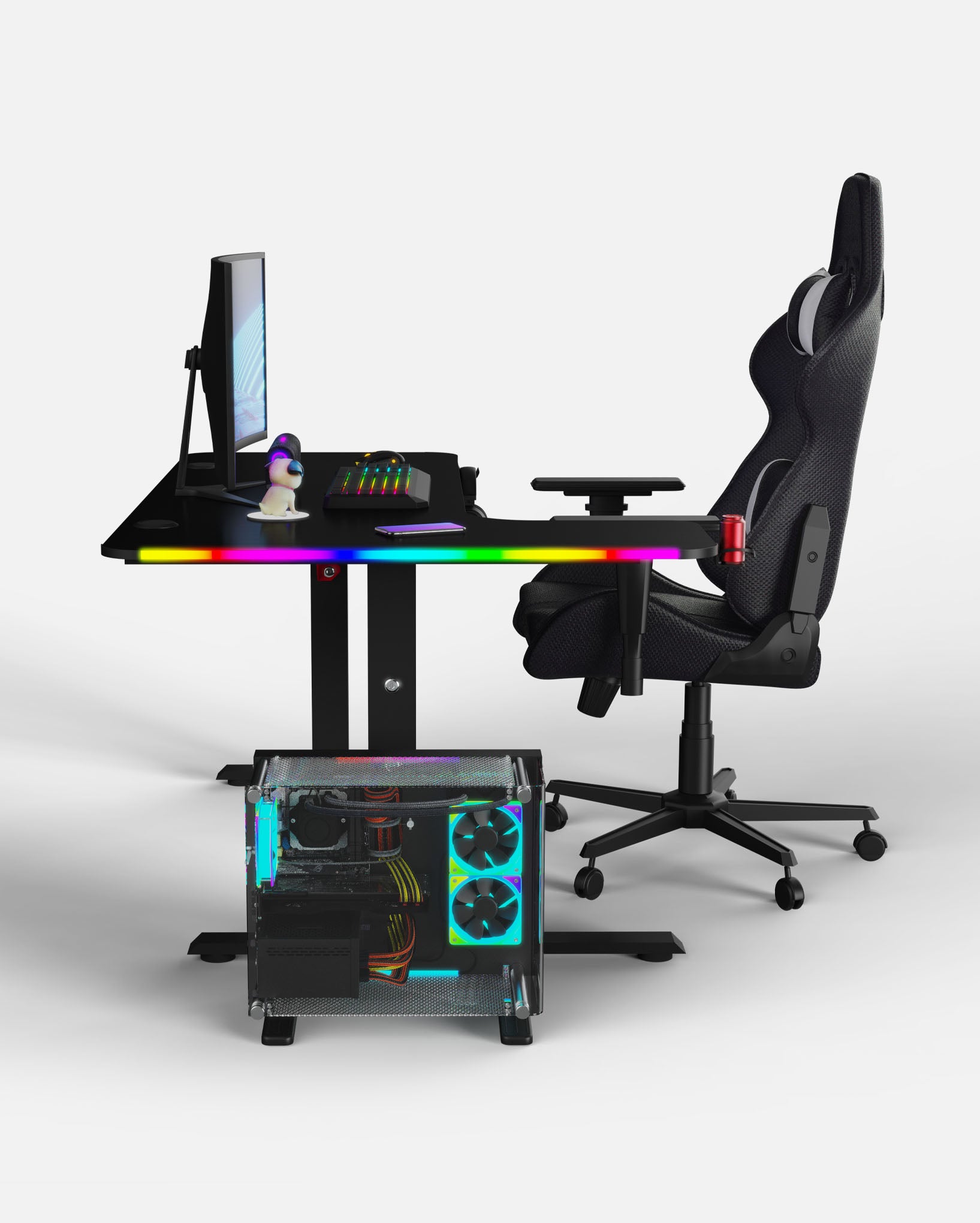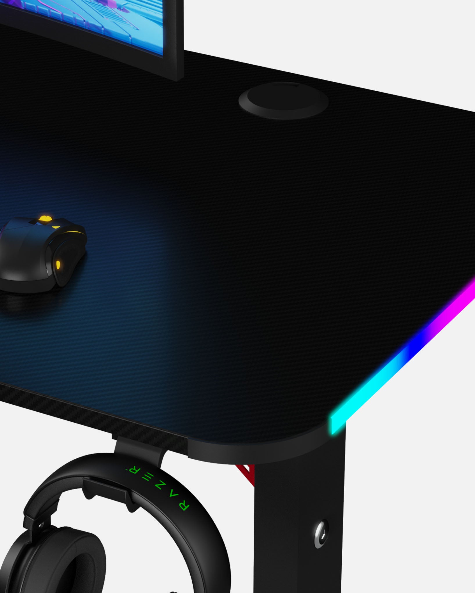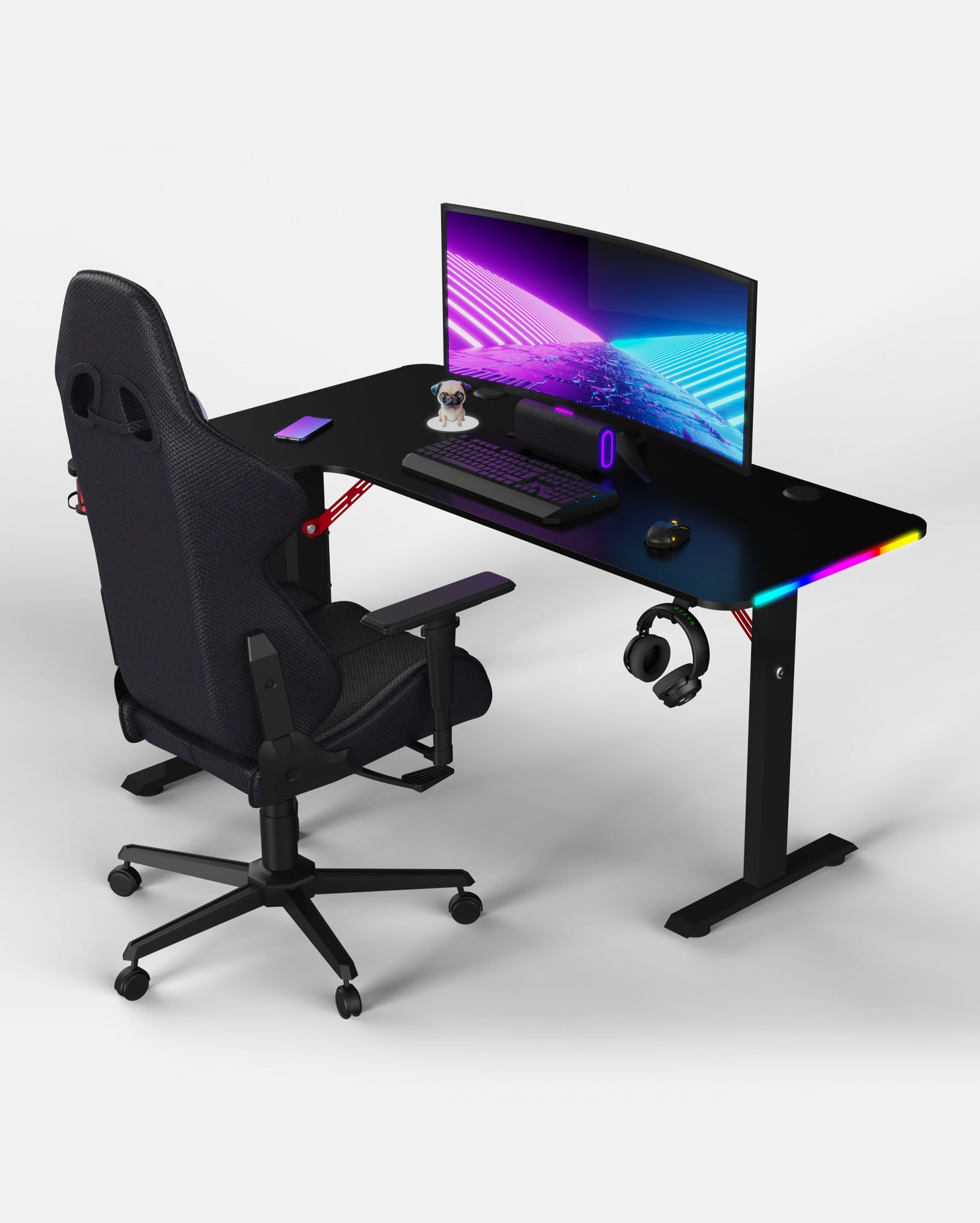 Kleine ruimte? Grote plannen. Het Pro 140 Hoekbureau biedt serieuze functionaliteit in een slank, L-vormig frame — perfect voor hoekopstellingen, console-stations of dual-screen rigs. Met geïntegreerde LED-verlichting, hoofdtelefoon- en drankhouders en een premium carbon fiber afwerking, is het ontworpen voor gamers die maximale efficiëntie willen zonder een greintje stijl te verliezen.