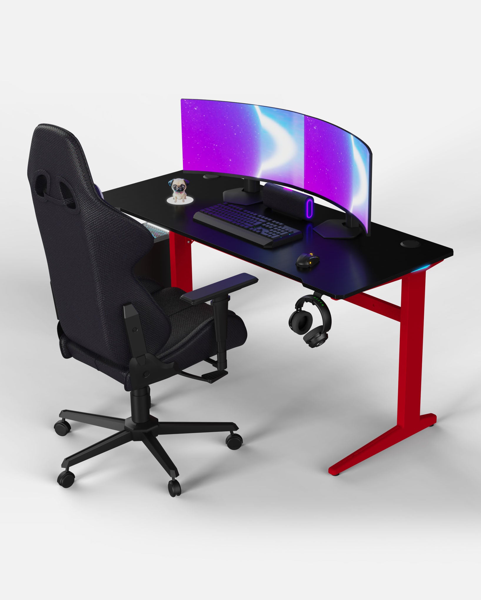 Core 120 Gaming Desk | LEDs, Headphone & Drink Mounts (Carbon Fibre Red, 120cm) Gaming Desk - Marcel Olsen