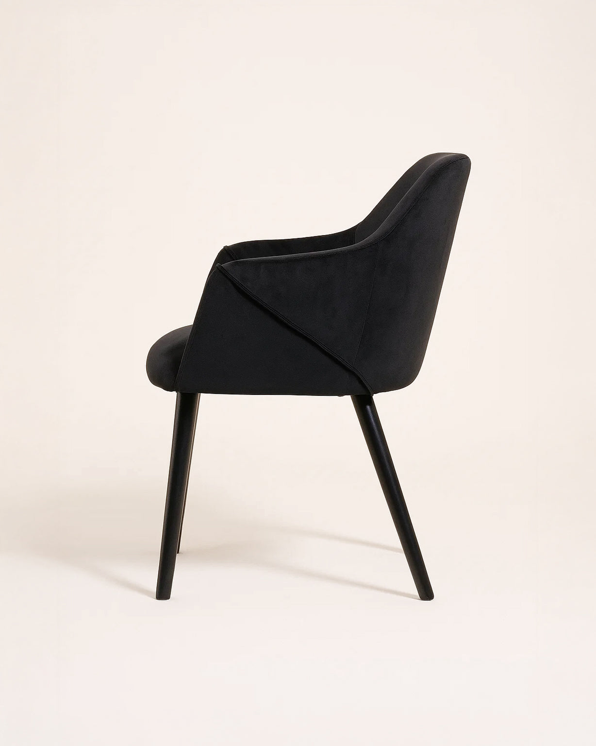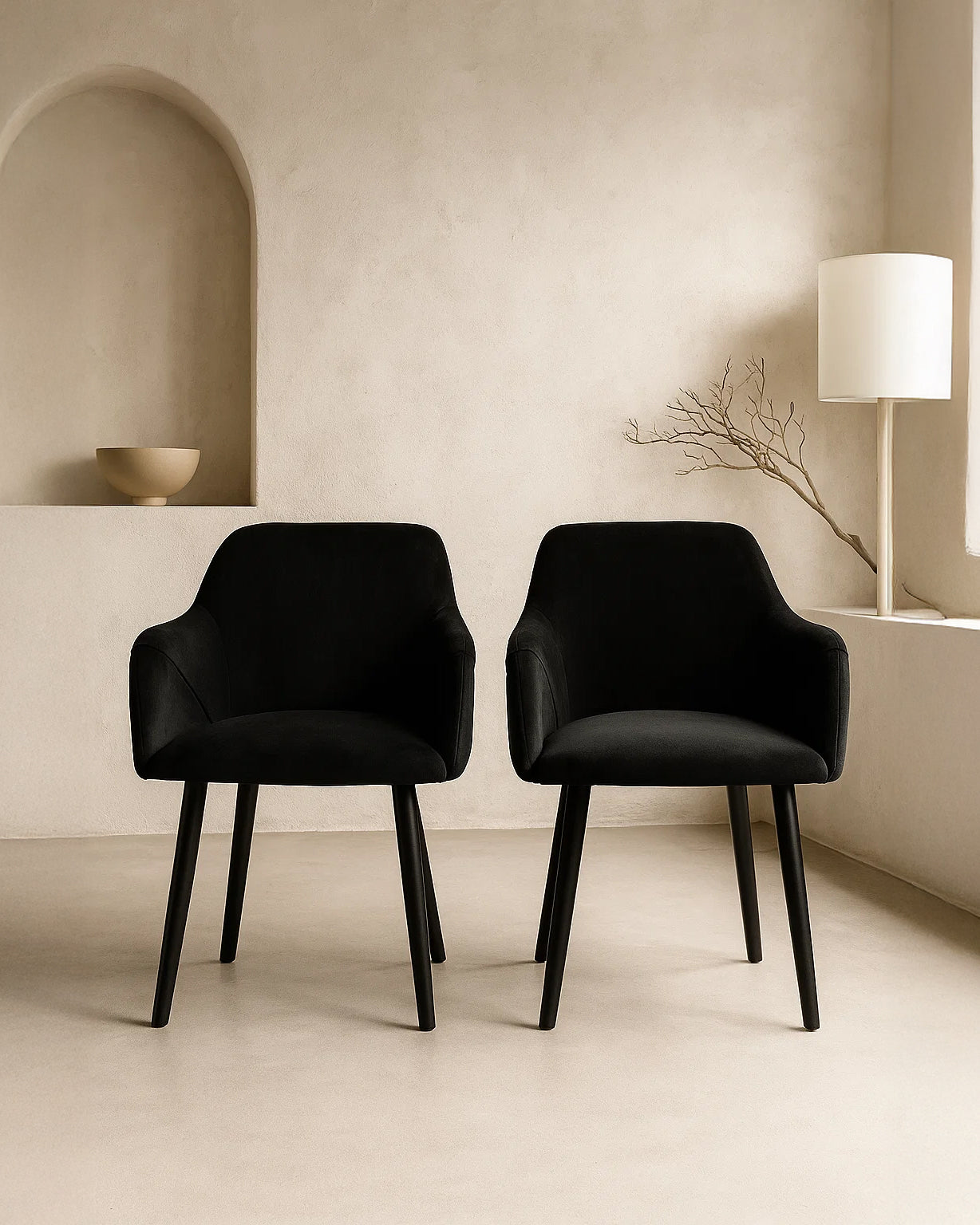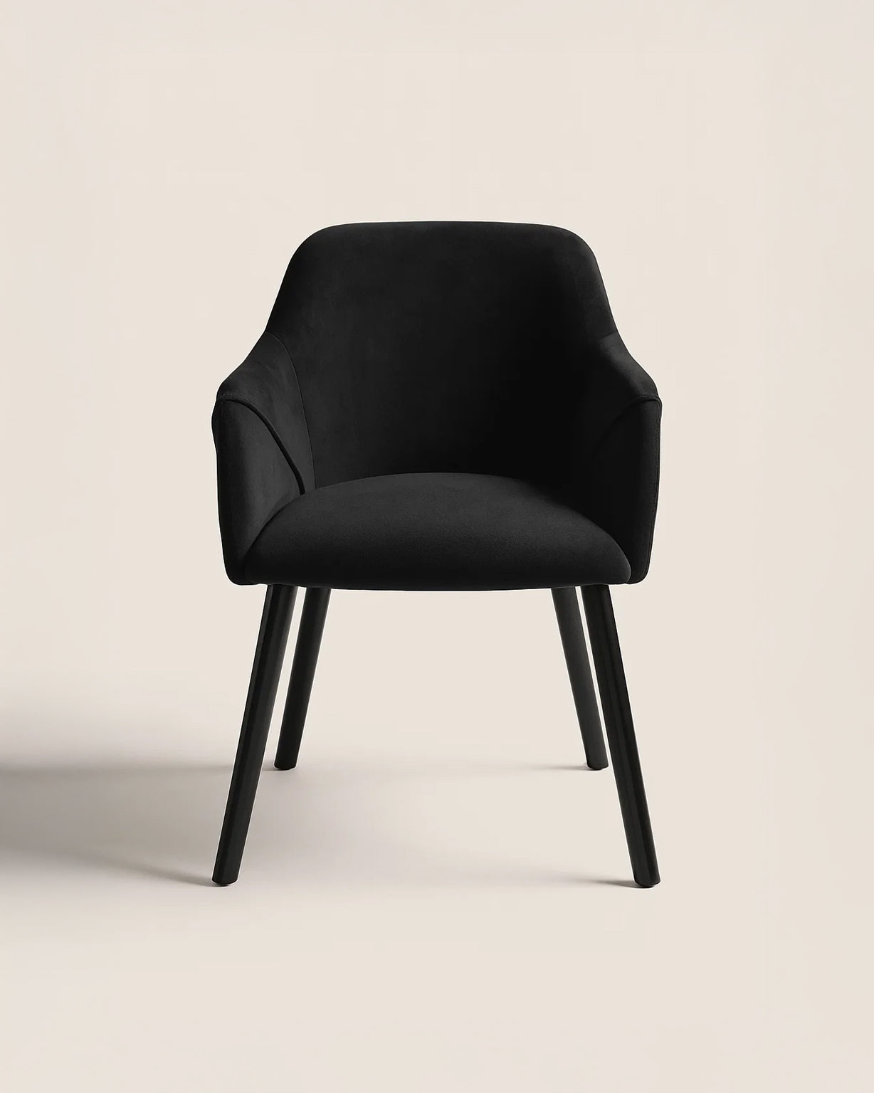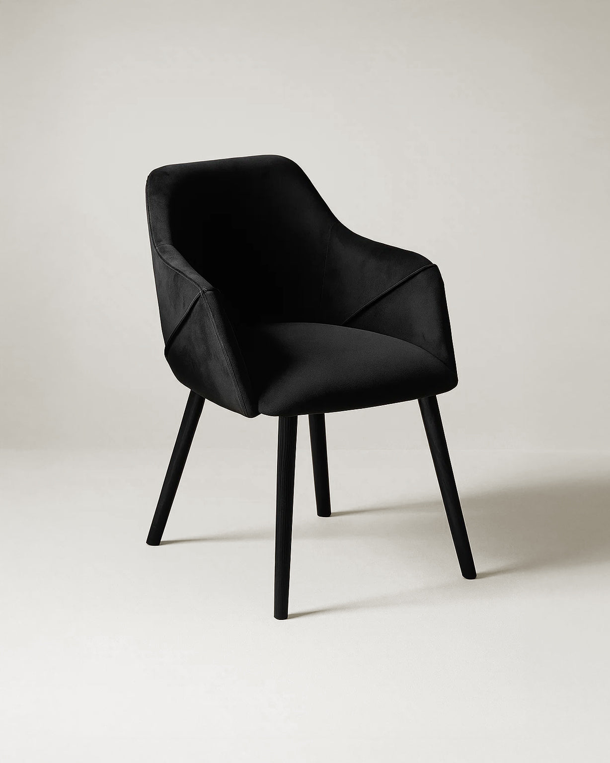 Zeg hallo tegen Bonanova — onze fluwelen eetkamerstoel die net zo goed aanvoelt als hij eruitziet. Ontworpen met zacht gebogen armen, een comfortabel gewatteerde zitting en slanke zwarte poten, is het het soort stoel dat elk eetmoment verbetert, van doordeweekse afhaalmaaltijden tot wijnrijke diners.